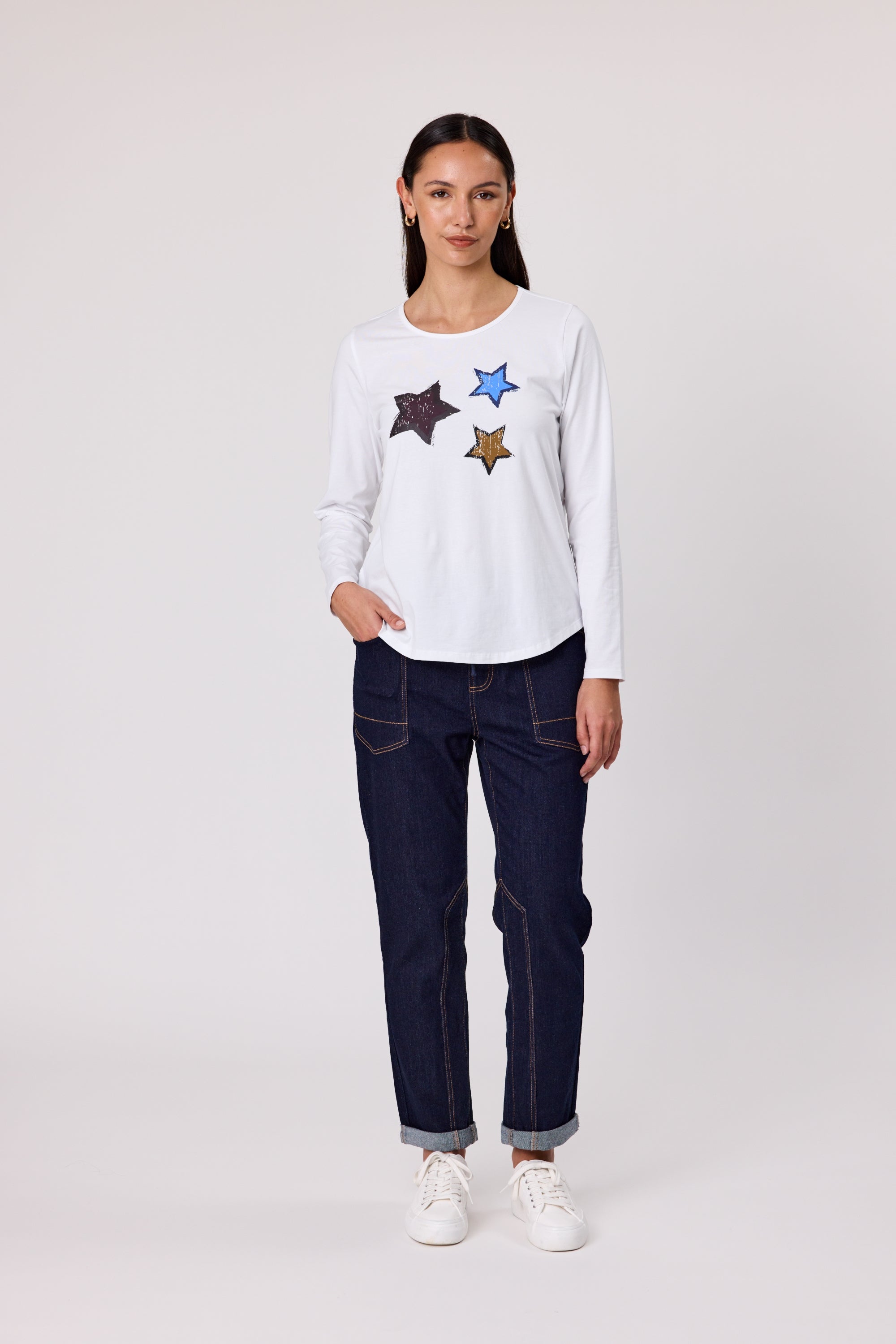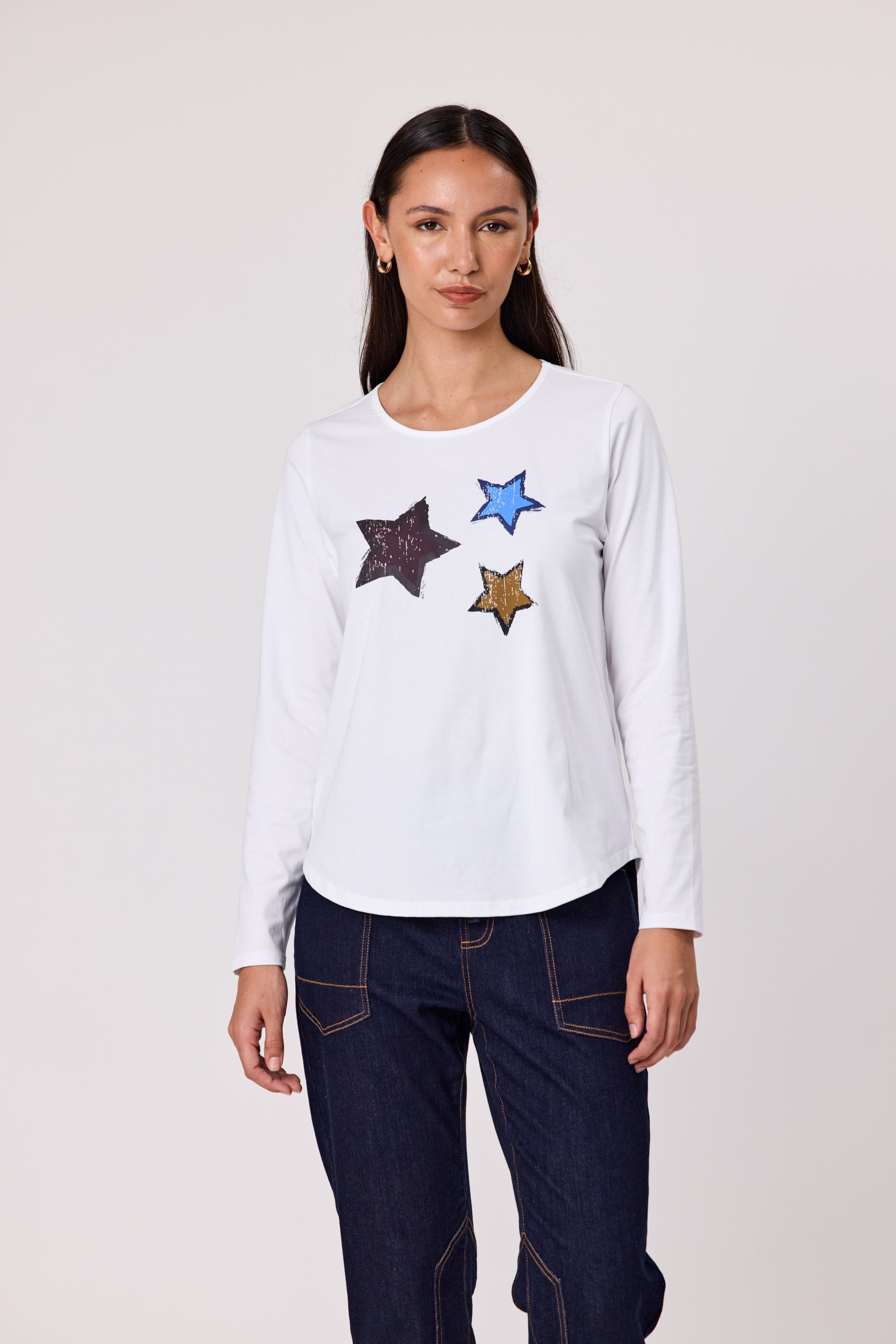 This essential long-sleeve top features a classic crew neck with binding for a polished finish. It’s designed with a bold front print. The soft fabric and relaxed fit make it perfect for everyday wear.