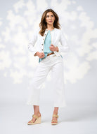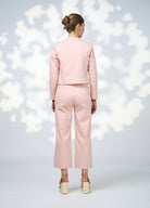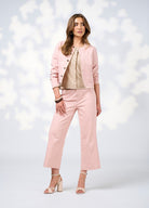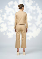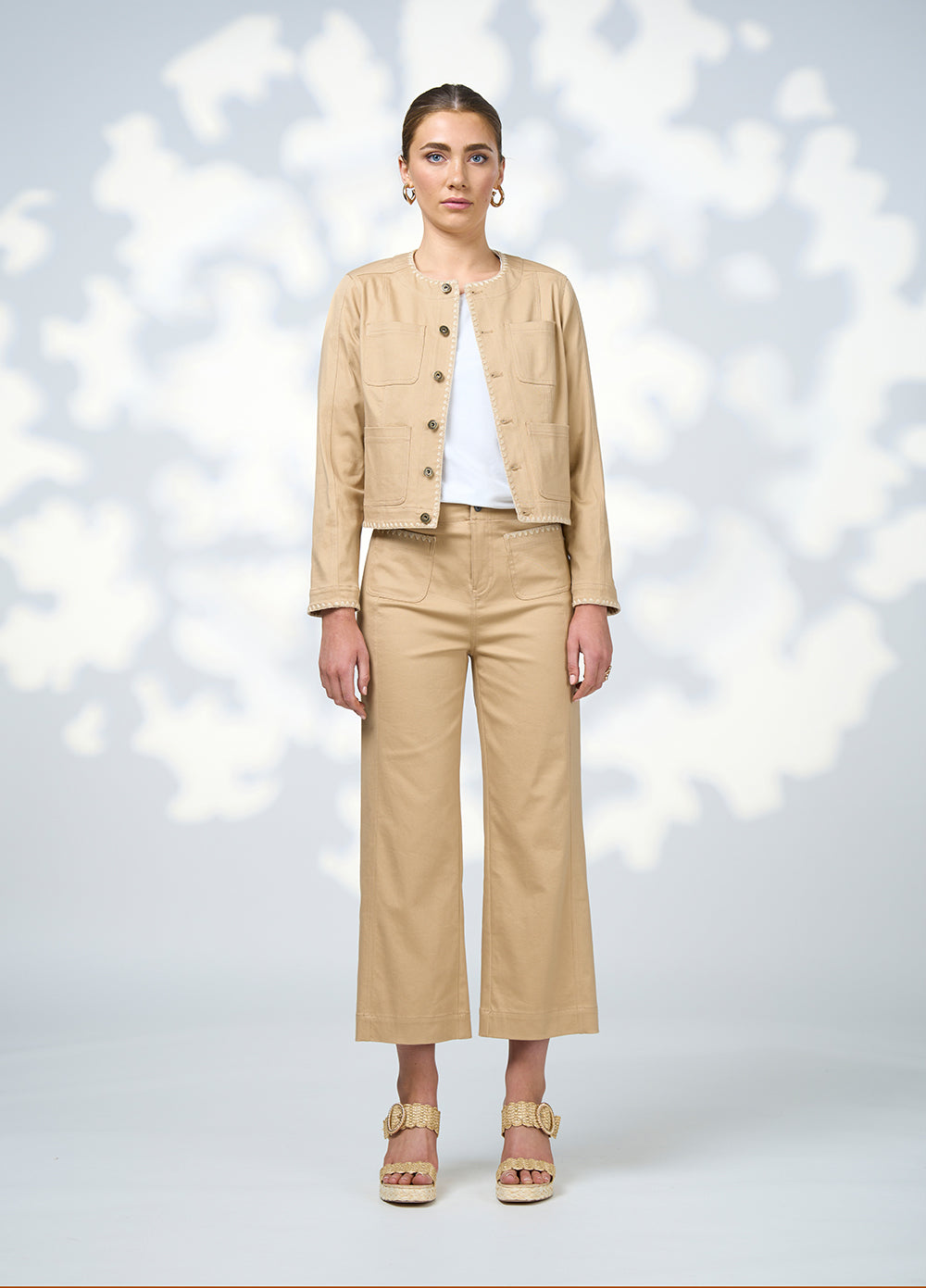 Straight leg pant in a stretch-cotton twill with front panel seams and back waist darts for a flattering fit, featuring embroidery details on the pockets.