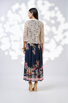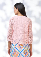 Button-through crochet lace cardigan, with scalloped edging and cotton placket and collar. The perfect layering piece to elevate any outfit.