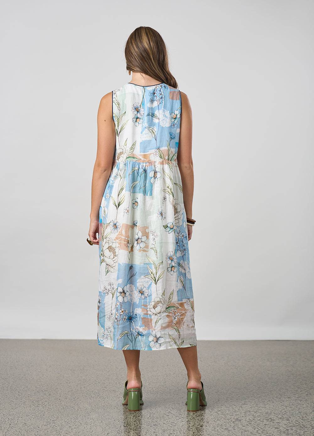 Printed, V-neck dress with bust darts and waist seam for a perfect fit, with a gathered skirt for ease. Lined.
