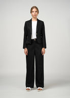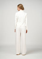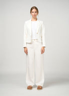 Slim fit tailored jacket, with double jet pockets with buttons, featuring flat piping detail inserted at the collar edge, outer sleeve and side back waist line. Fully lined with functional pockets.