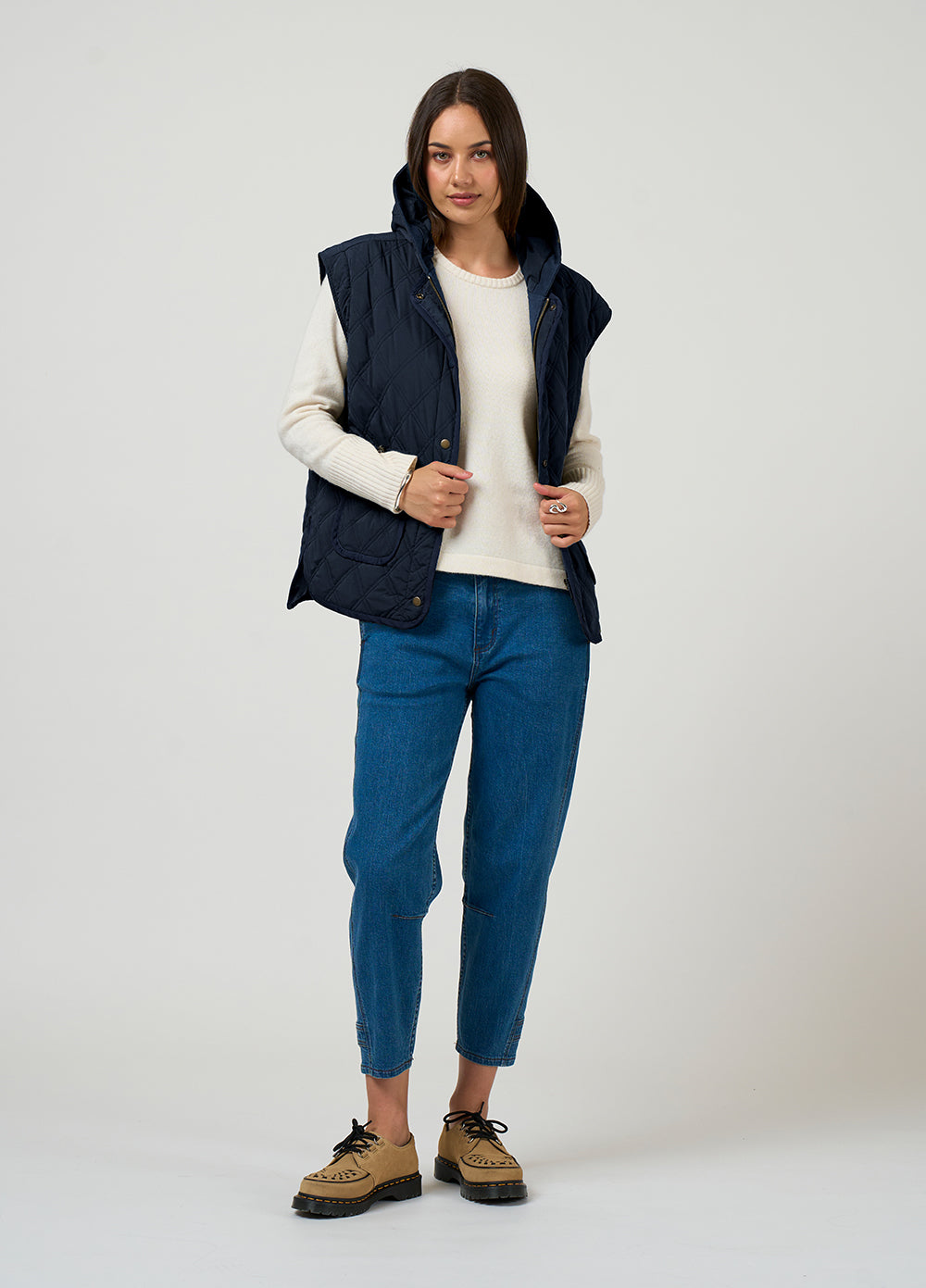 Multi functional jacket with front patch pockets, and removeable sleeves and hood - very versatile giving the wearer 4 ways to wear. Fully lined.