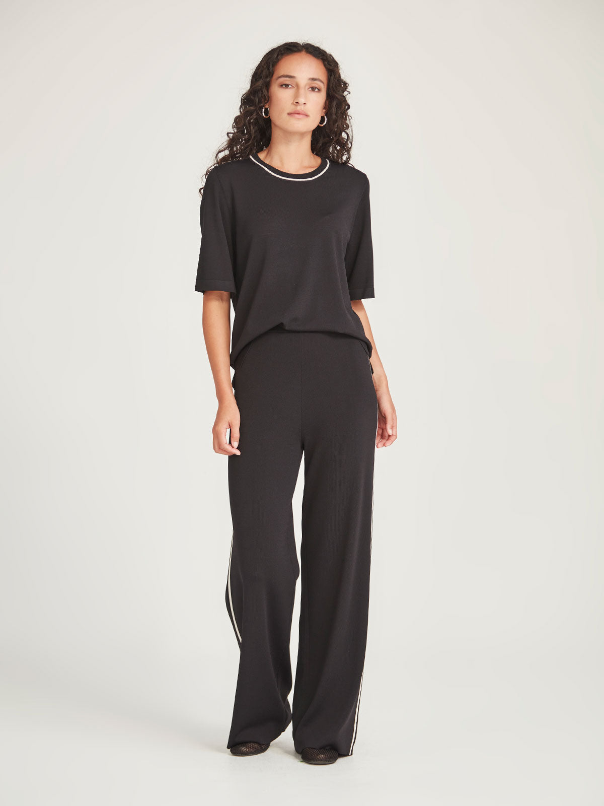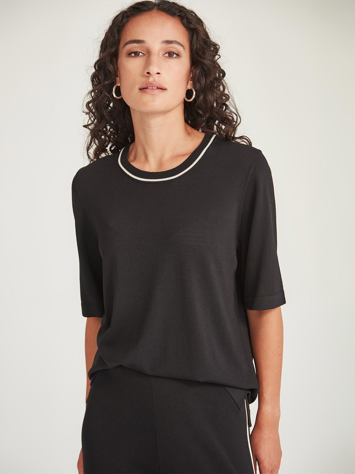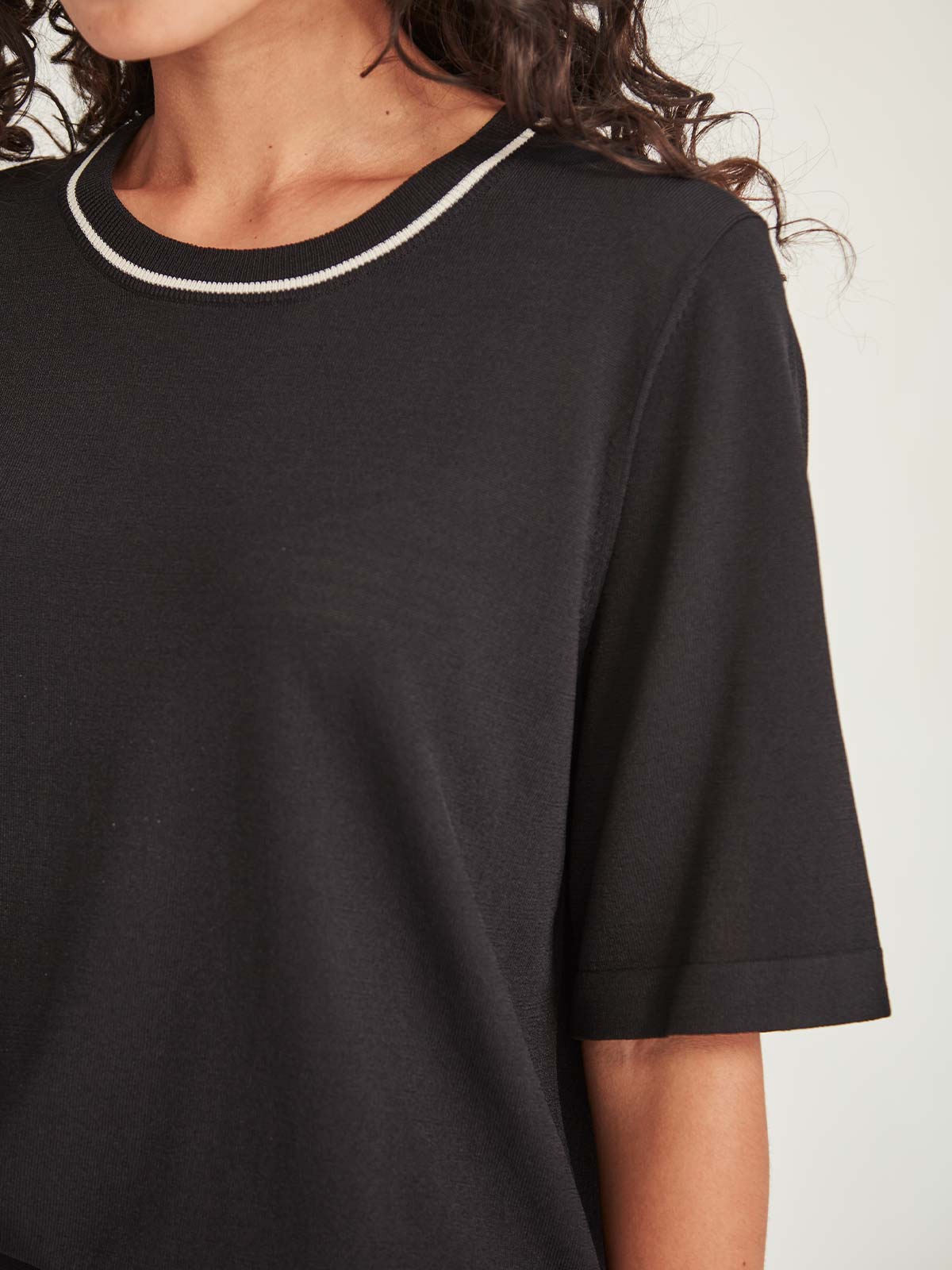 Designed for every part of your journey, our Luxe Jersey travel edit combines refinement with the ease of leisurewear. The Gemma Tee is an easy tee style with a sporty stripe neckband.