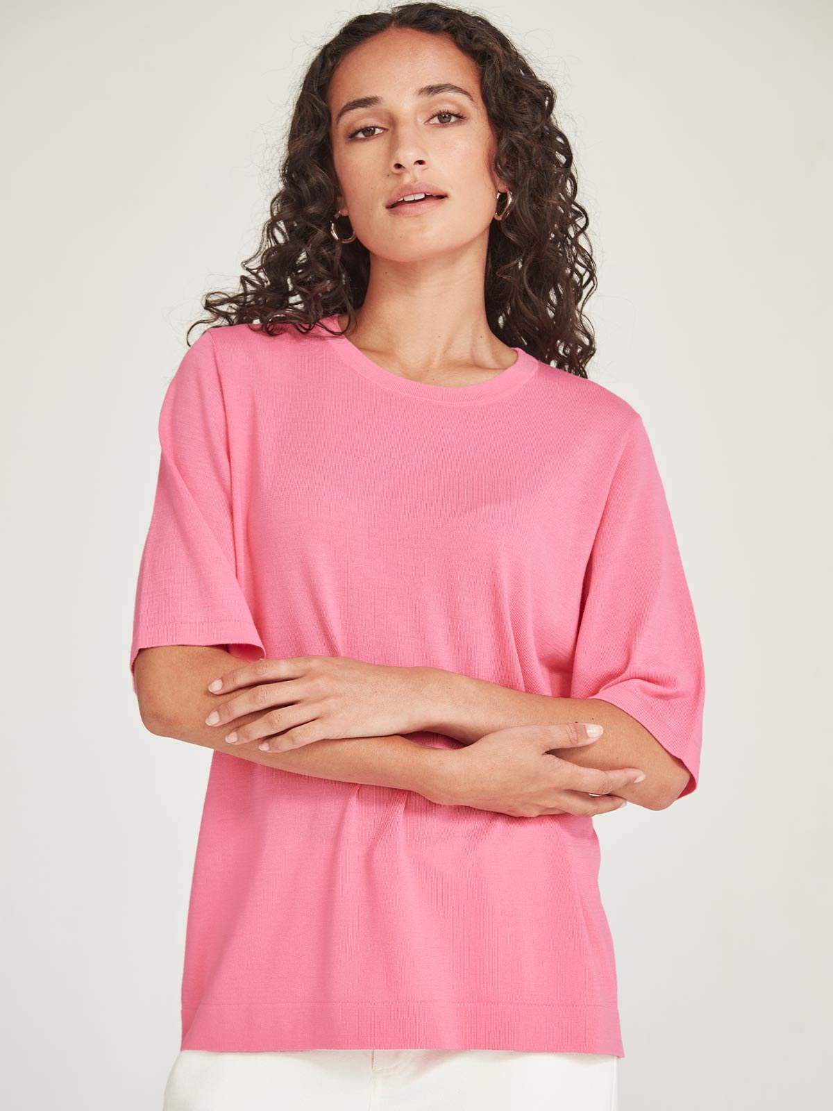 The Jayden is a short sleeve knitted top, crafted in our eco-conscious Cotton Modal yarn. This knit is luxuriously smooth and lightweight. It comes in a SS25 colour palette that mimics the vibrant hues of the gemstones.