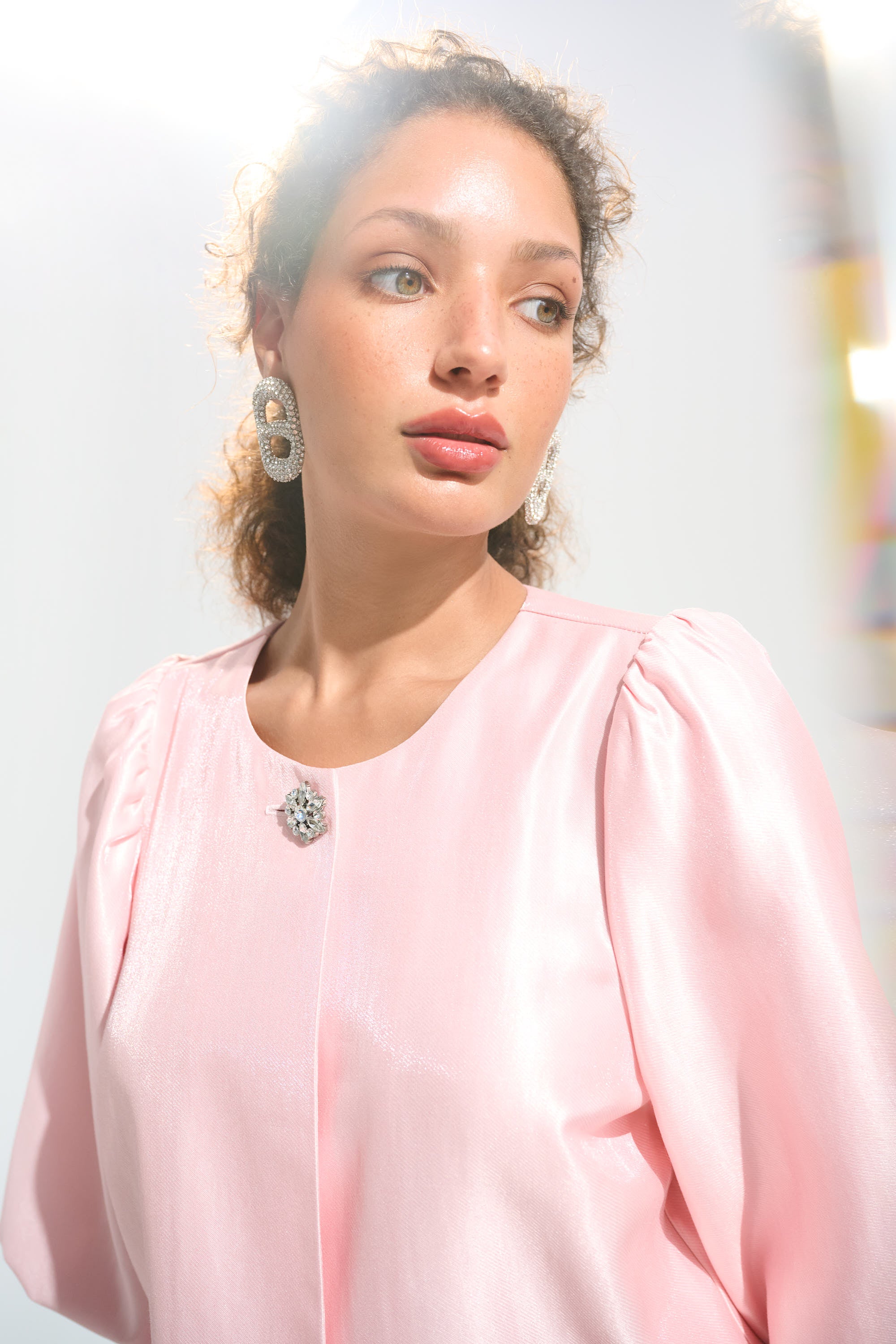 This occasion-ready jacquard jacket adds a soft shimmer with its sculptural puff sleeves and Rhinestones statement buttons. A polished piece with just the right touch of drama. Part of the Signature collection.