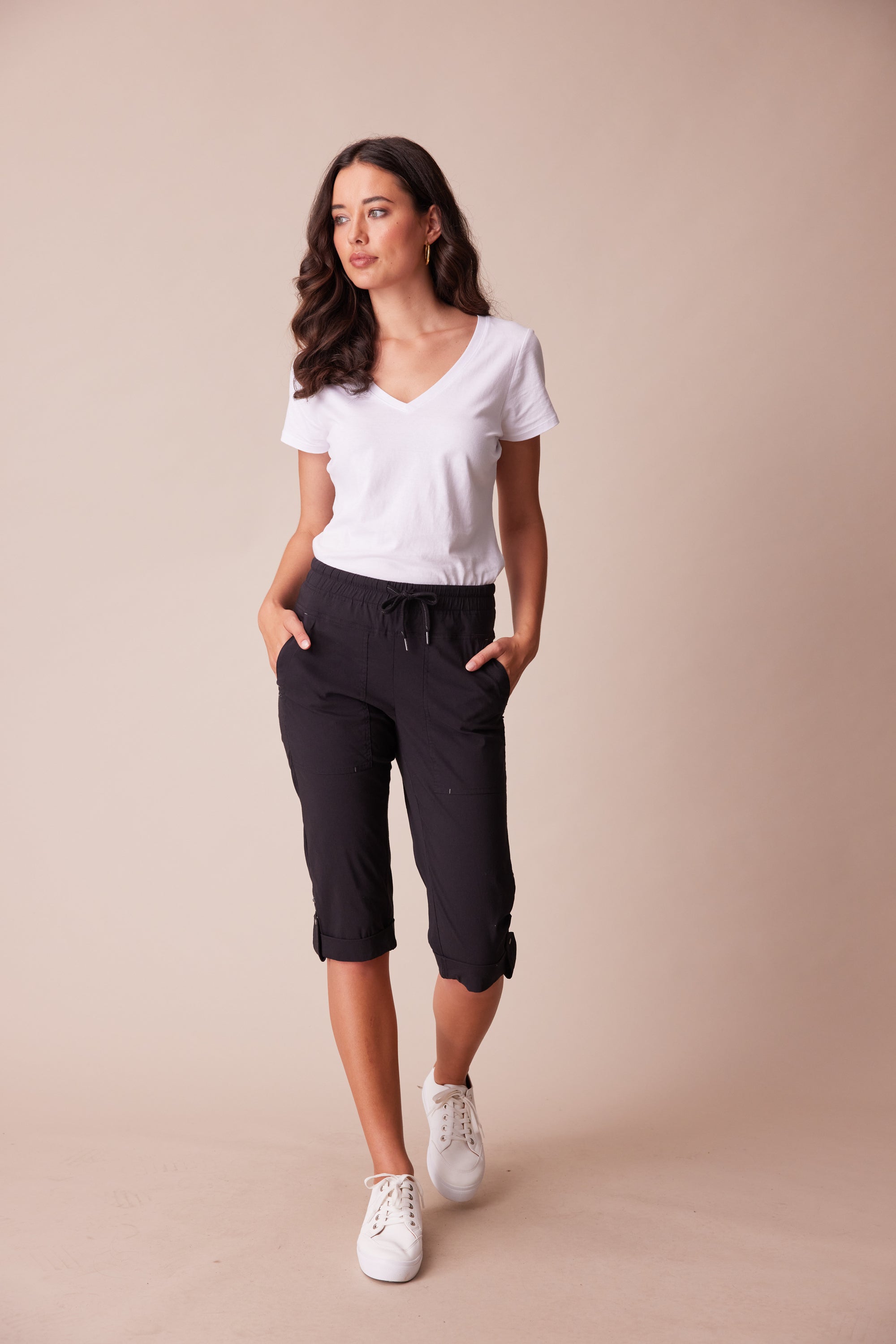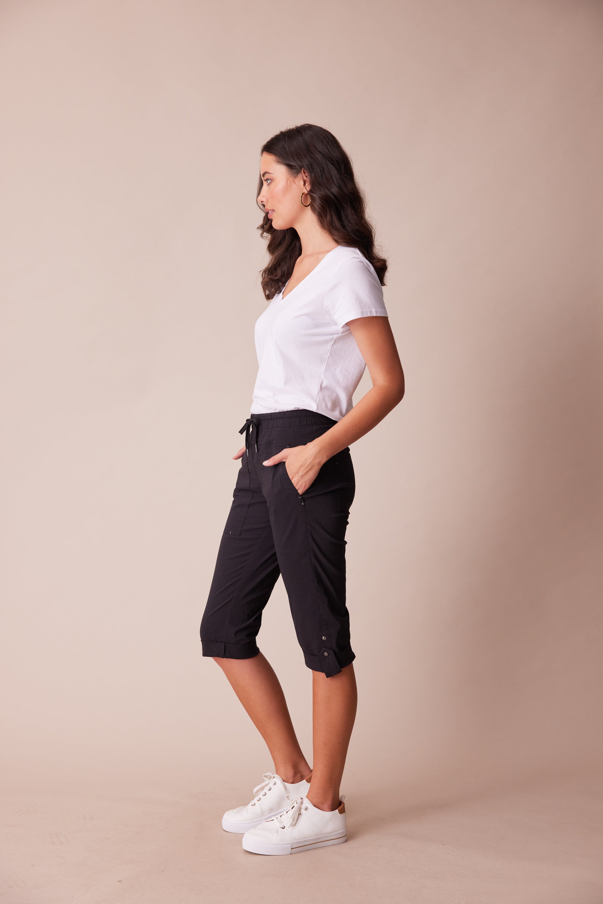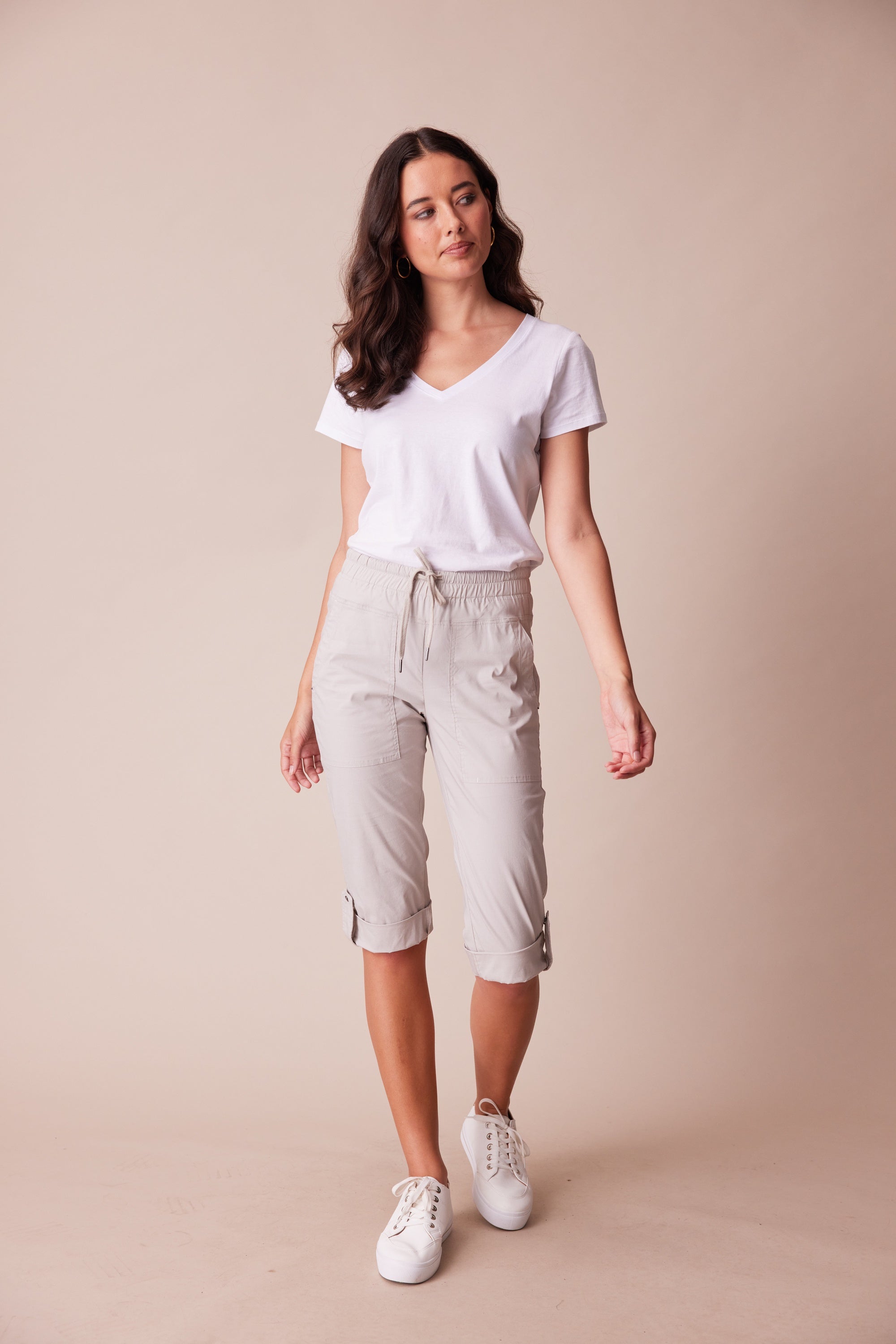 The LTL Cargo Short — features elasticated waist with adjustable drawcord, front pocket with antique nickel hardware & relaxed leg with adjustable hem tab for turn up cuff. Perfect lightweight cotton rich stretch shorts for high summer.