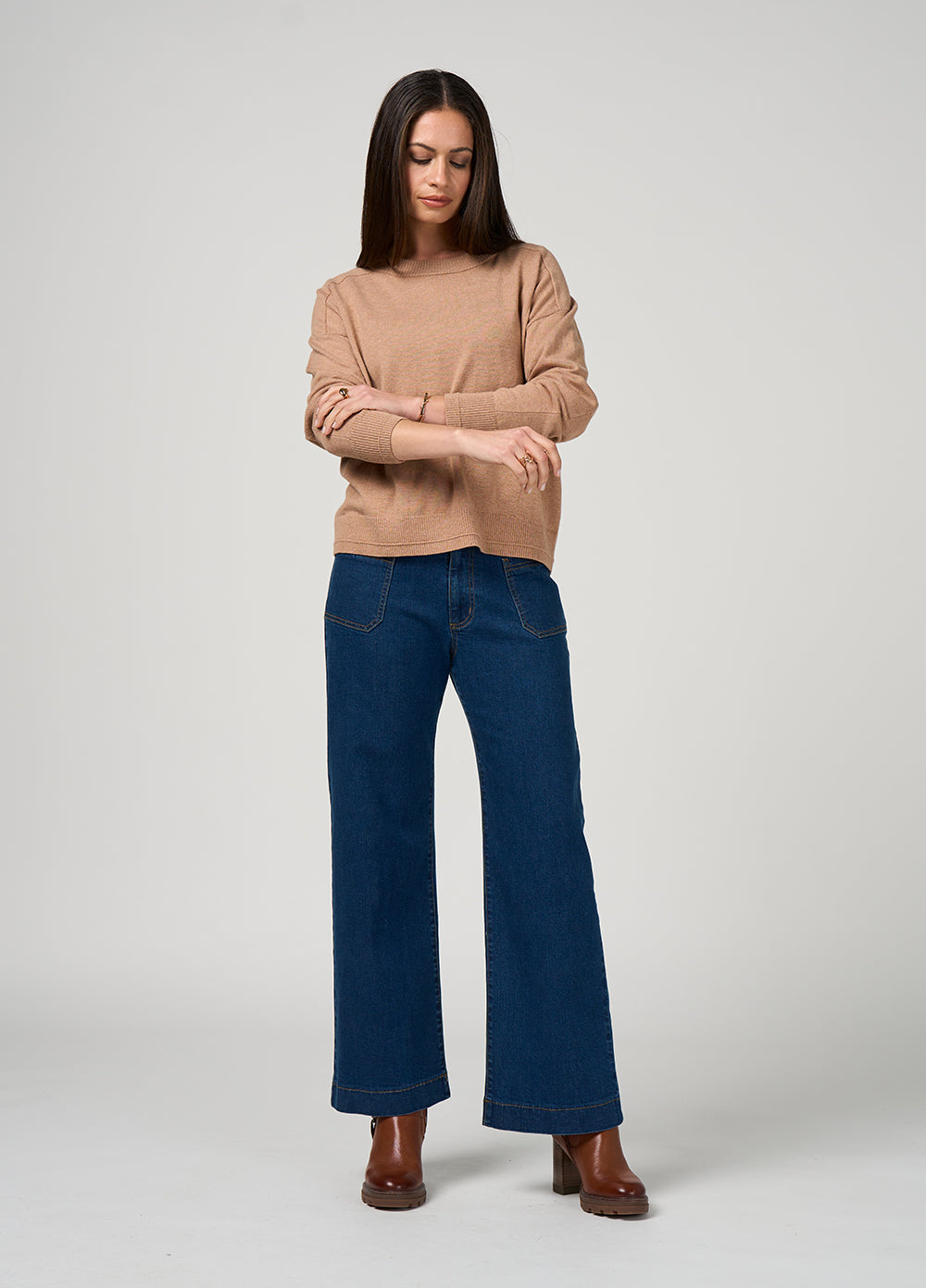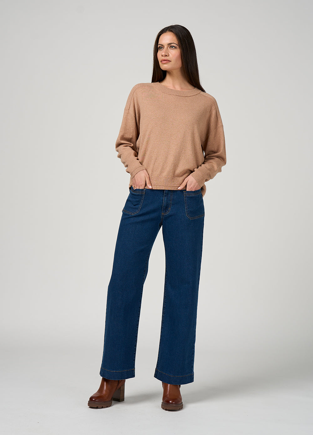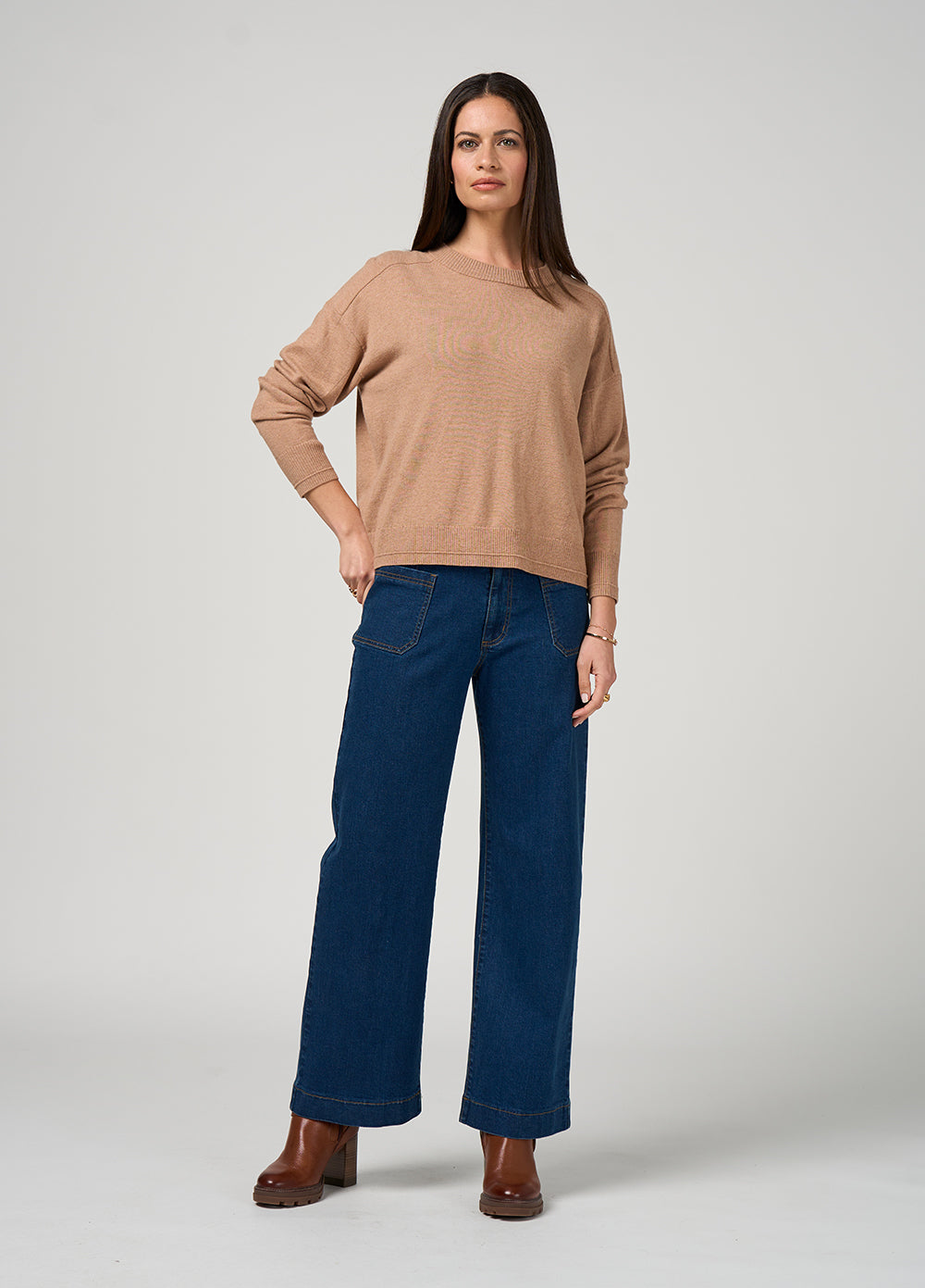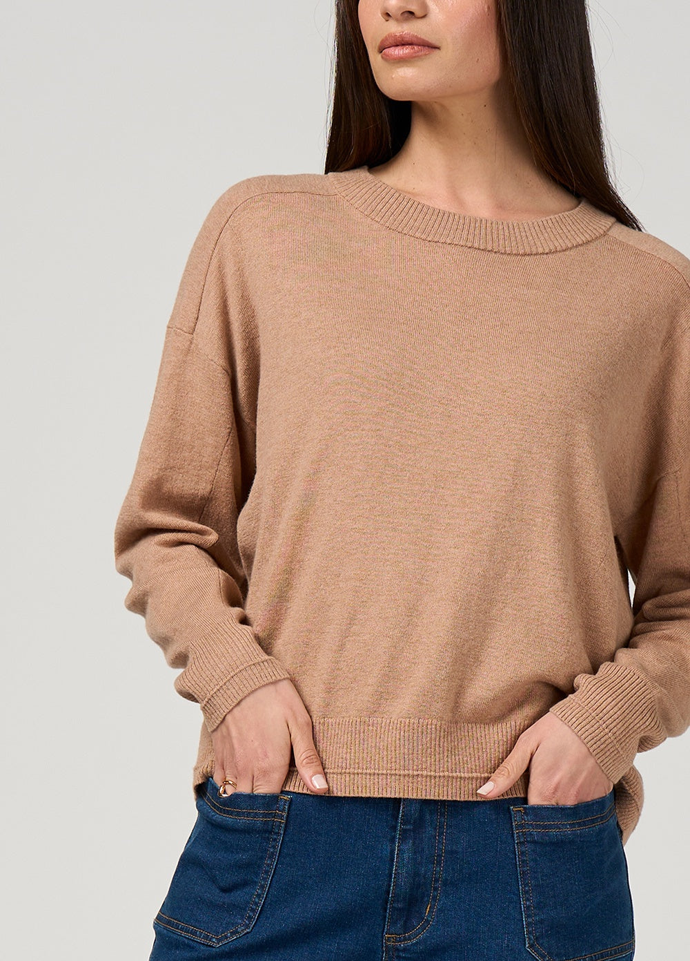 Relaxed sweater in a soft merino blend, featuring refined rib texture detailing. A modern staple that balances comfort.