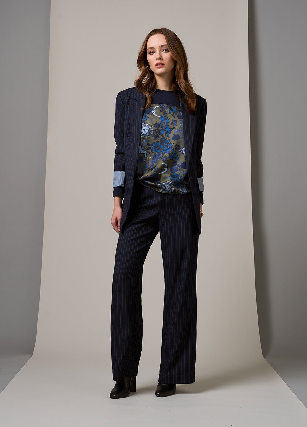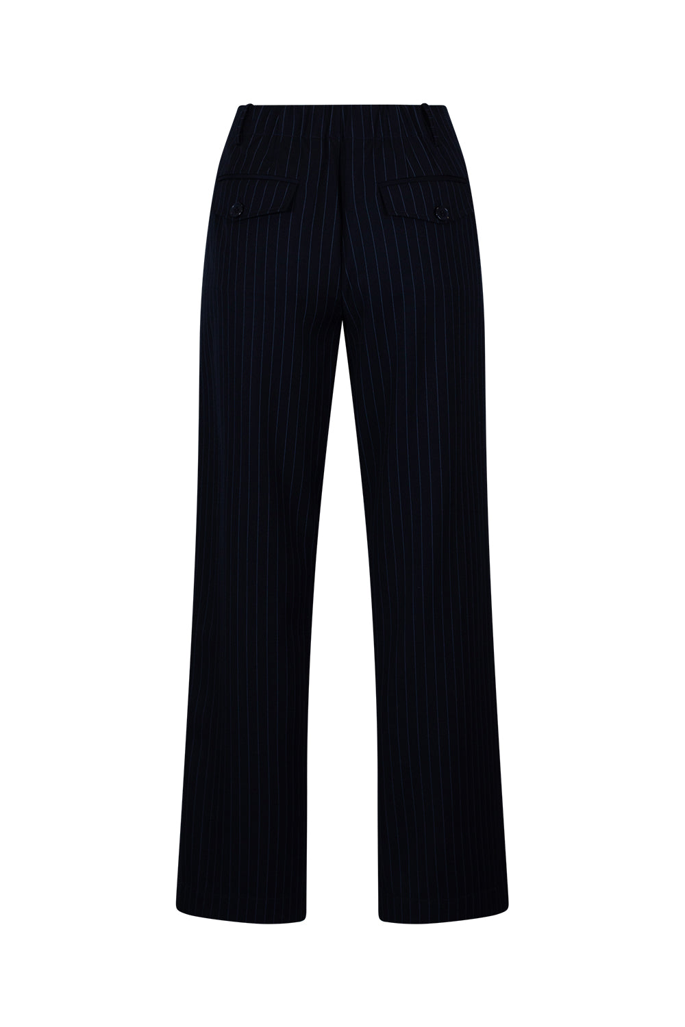 Super flattering wide-leg pant, with front pockets and forward side seams, with an elasticated back waist, zip fly, and flap pockets on the back.