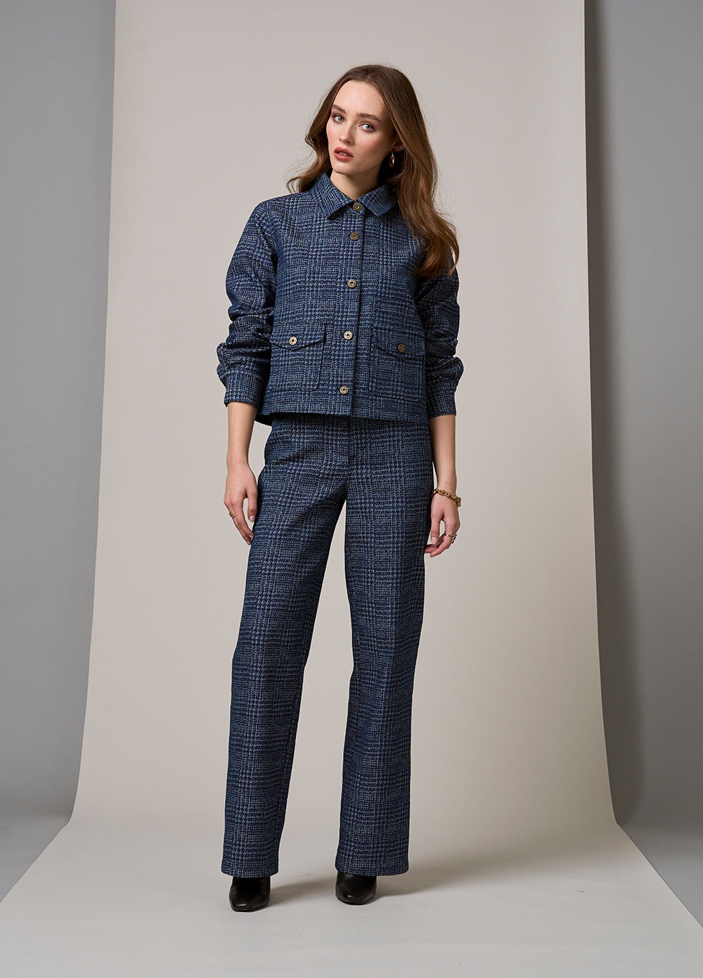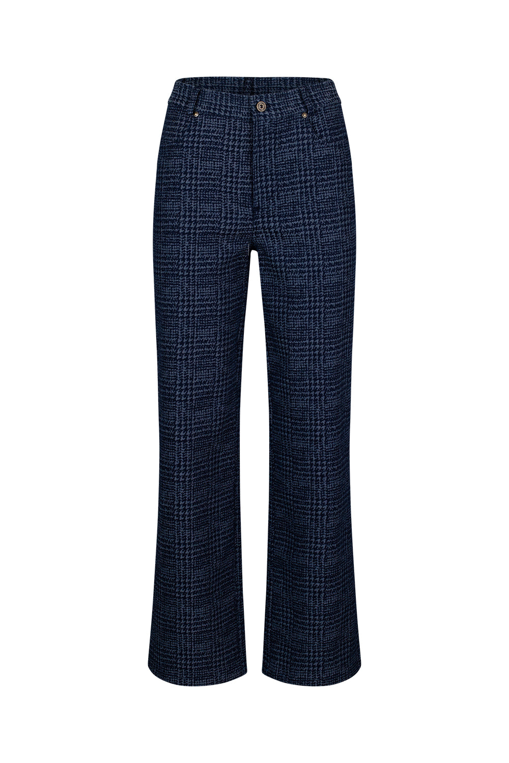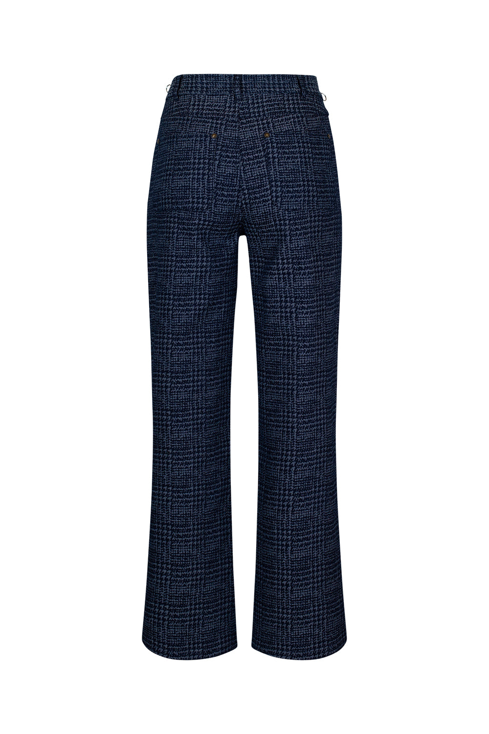 Straight leg, houndstooth, denim pant for a perfect fit, with forward side seams to create a flattering fit. Featuring belt keepers and front fly.
