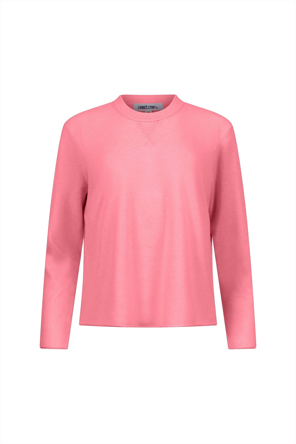Crew neck sweater in a cashmere, wool blend with a faux rib V-neck feature. With pointelle detailing.