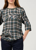 Crew neck top with a ribbed neckline, and 3/4 length sleeves, with side splits for relaxed comfort and ease.