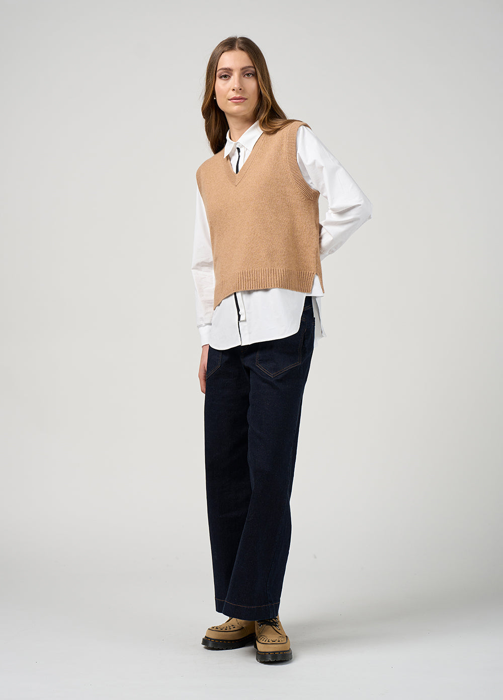 V-neck vest in a super soft merino-cotton blend, featuring ribbing detail around neckline, cuffs and hem. Perfect for layering.
