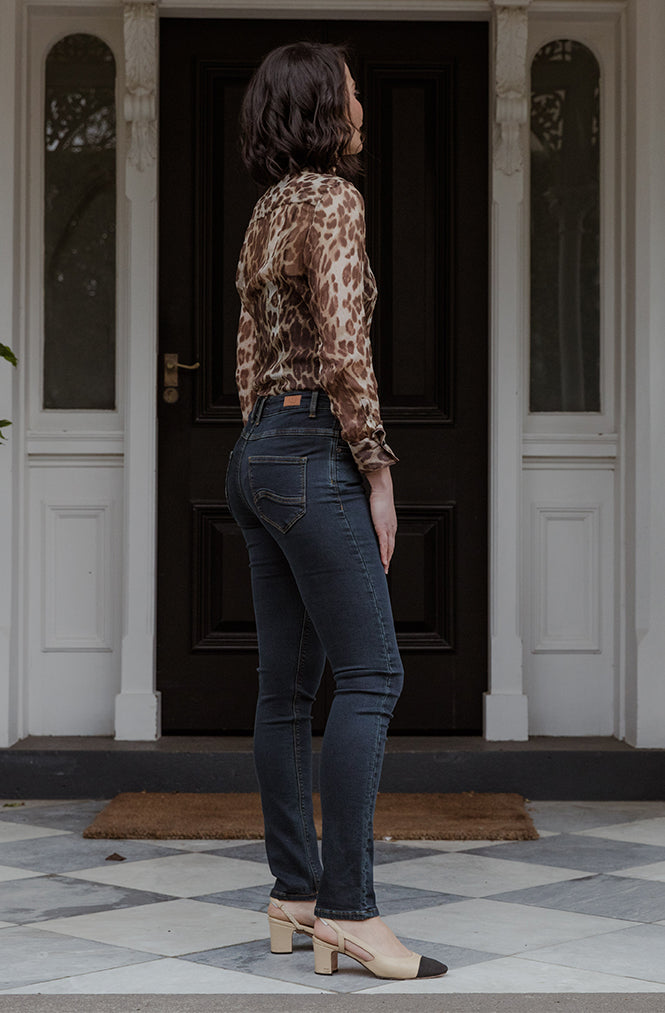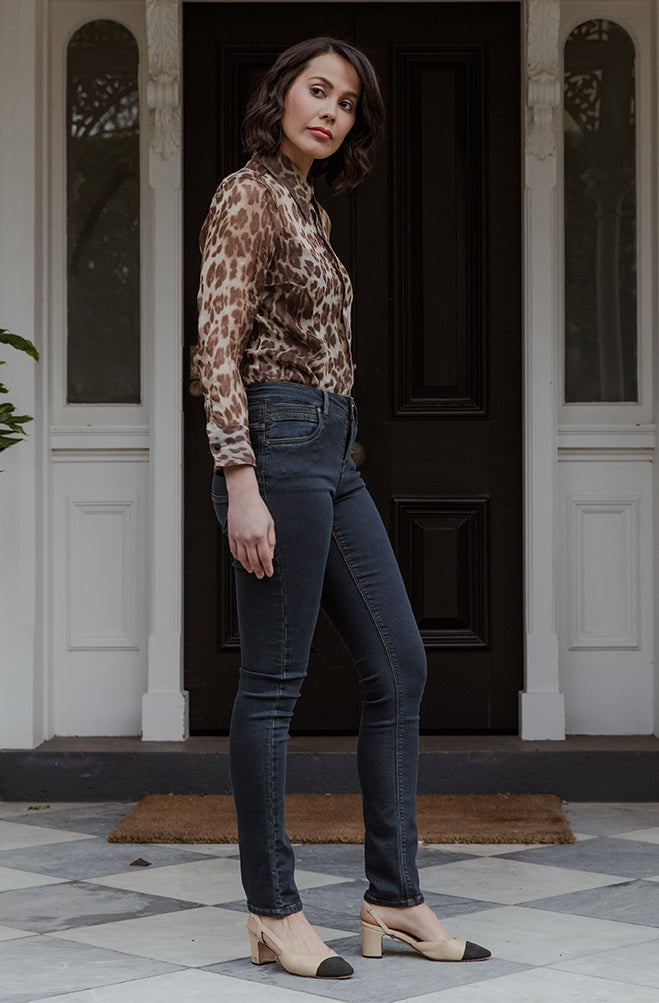 Neat dark wash in this oh sooo comfortable top selling full length jean with its hybrid knit backing. So comfortable in fact that it feels like you are wearing a pair of your favorite trakkys but you look really well dressed at the same time! Midrise (24cm) and leg is straight from the lower thigh down rather than being tapered. New colour – Midnight is 92% Cotton 6% Polyester 2% Spandex.