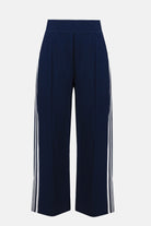 A sporty twist on a soft culotte shape, these scuba jersey pants feature side stripe rib trim and clean welt-style details. The elastic waistband with gentle shirring keeps the fit relaxed yet refined.