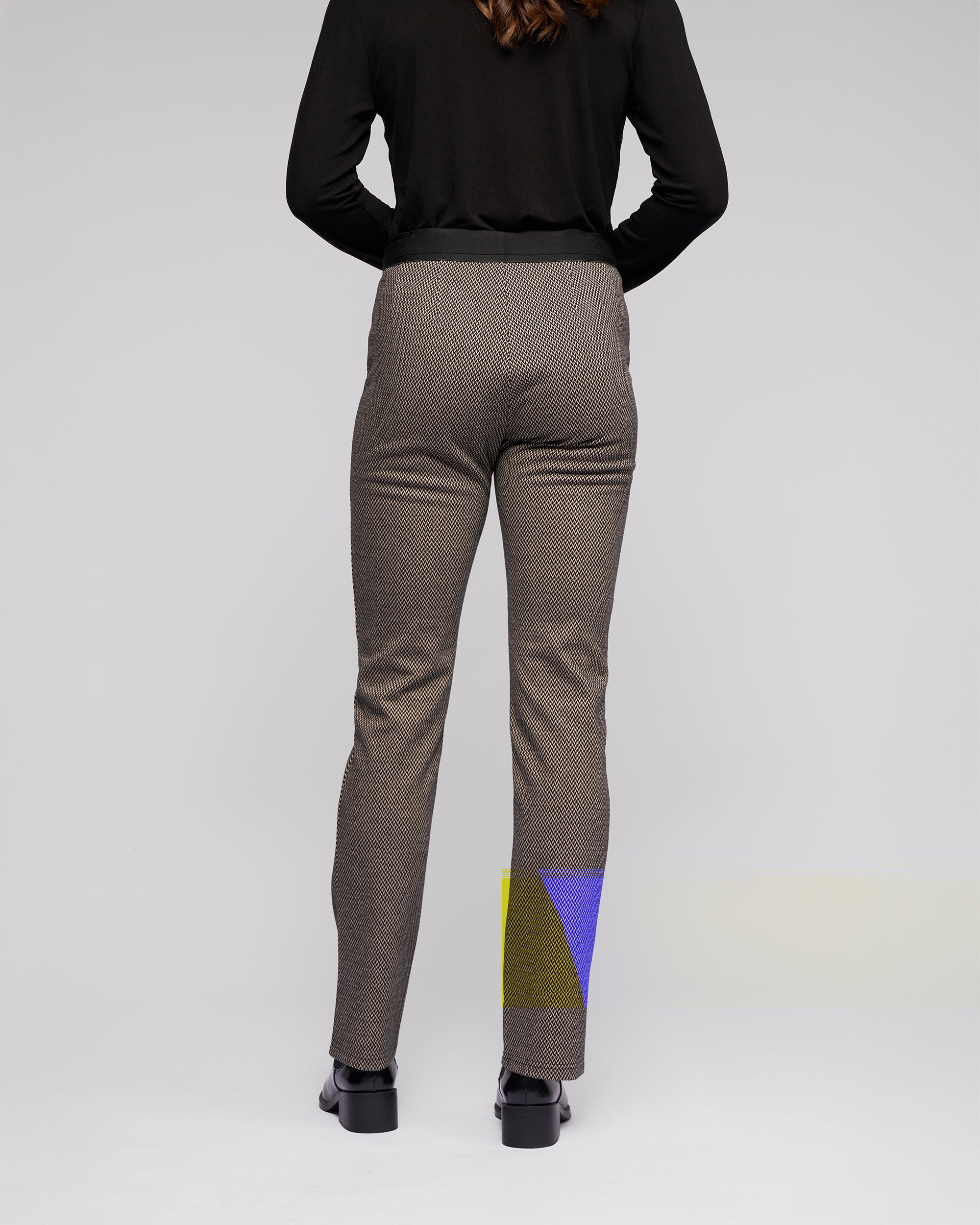 Full-length slim pant in a comfortable stretch knit, designed in our Knox print — a black and oat-coloured check. This pull-on style features a black elastic detail waistband and centre-front pintuck seams for a sleek, elongating look, while the stretch fabric ensures a smooth, comfortable fit.