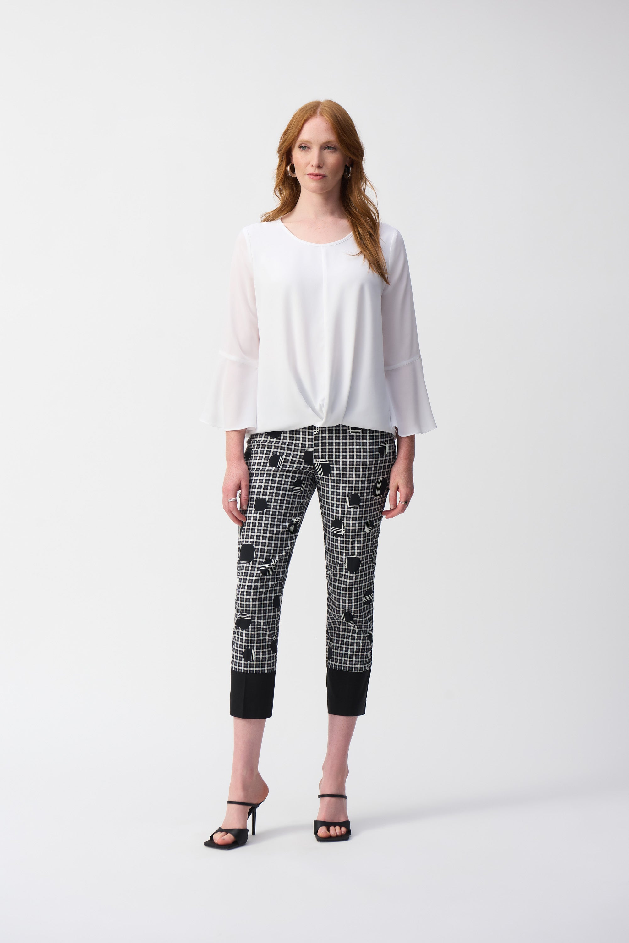 Joseph Ribkoff Plaid & Dot Print Crop Pants / 251210