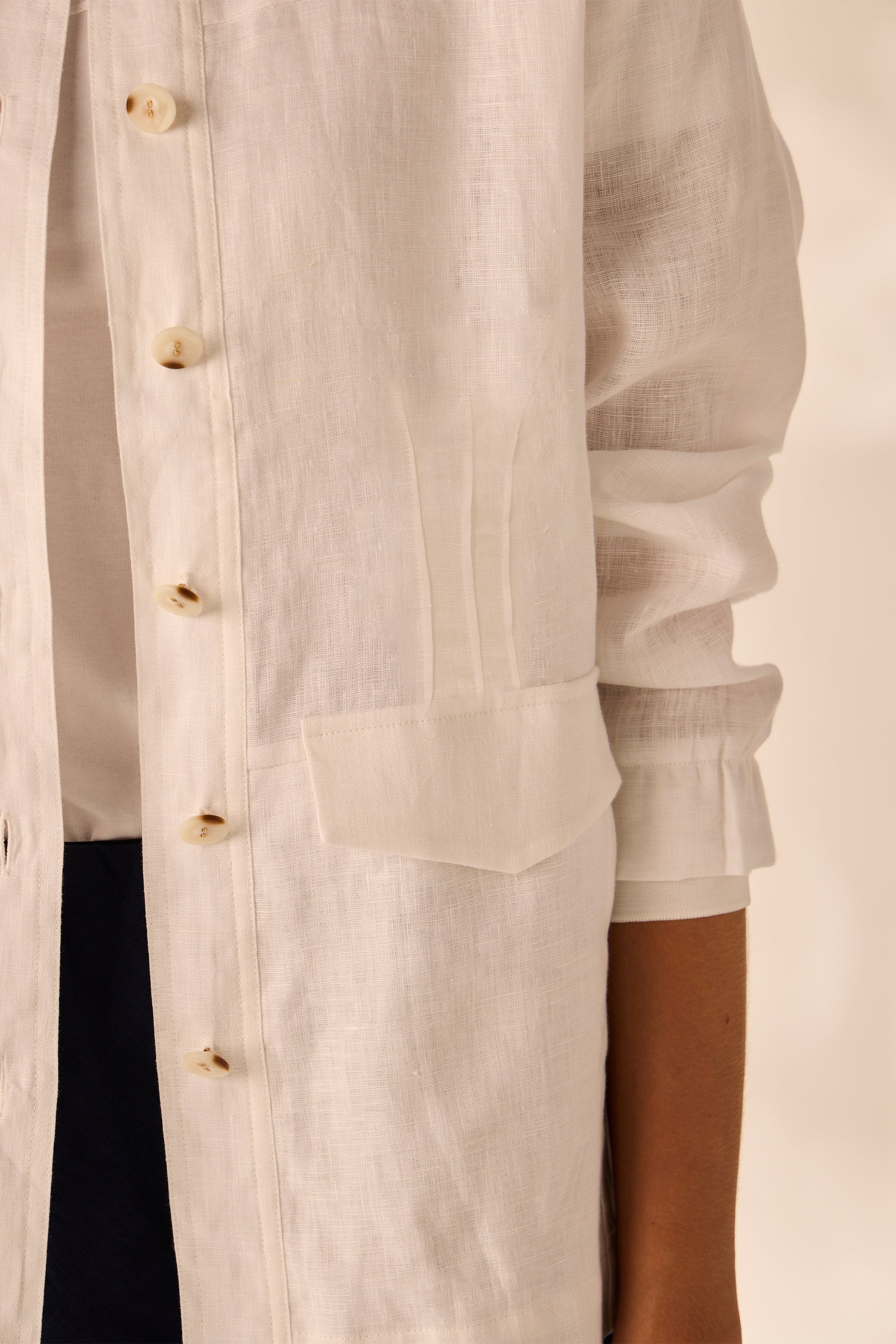 The Hayden Jacket is a smart-casual staple, crafted from breathable linen and designed for effortless style. Featuring refined pin-tuck detailing at the front, ribbed cuffs, and an elasticated back waist, it offers a flattering silhouette with a relaxed, modern feel—perfect for layering through the seasons.