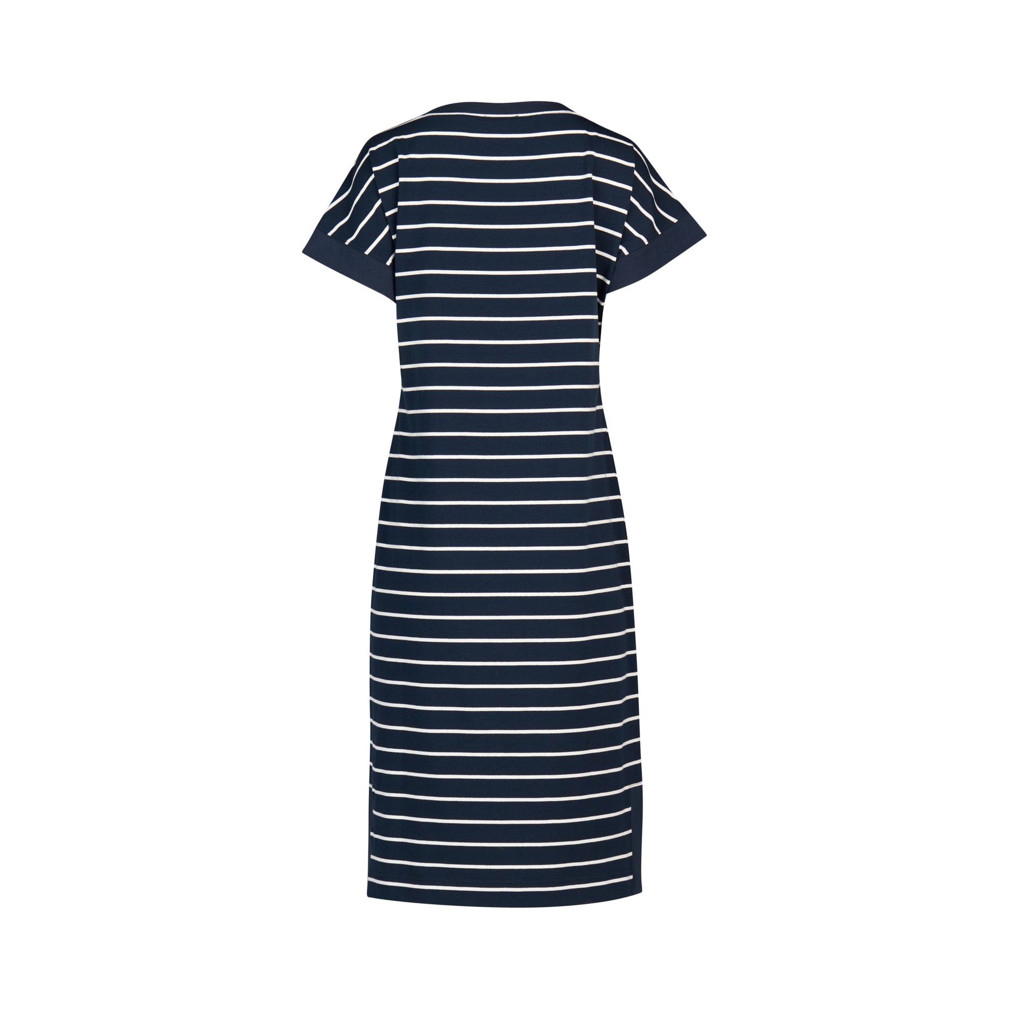 A relaxed striped t-shirt dress made from soft cotton-elastane blend, featuring a round neckline and short drop sleeves for an effortless fit. Finished with side splits at the hem for ease of movement and a laid-back look.