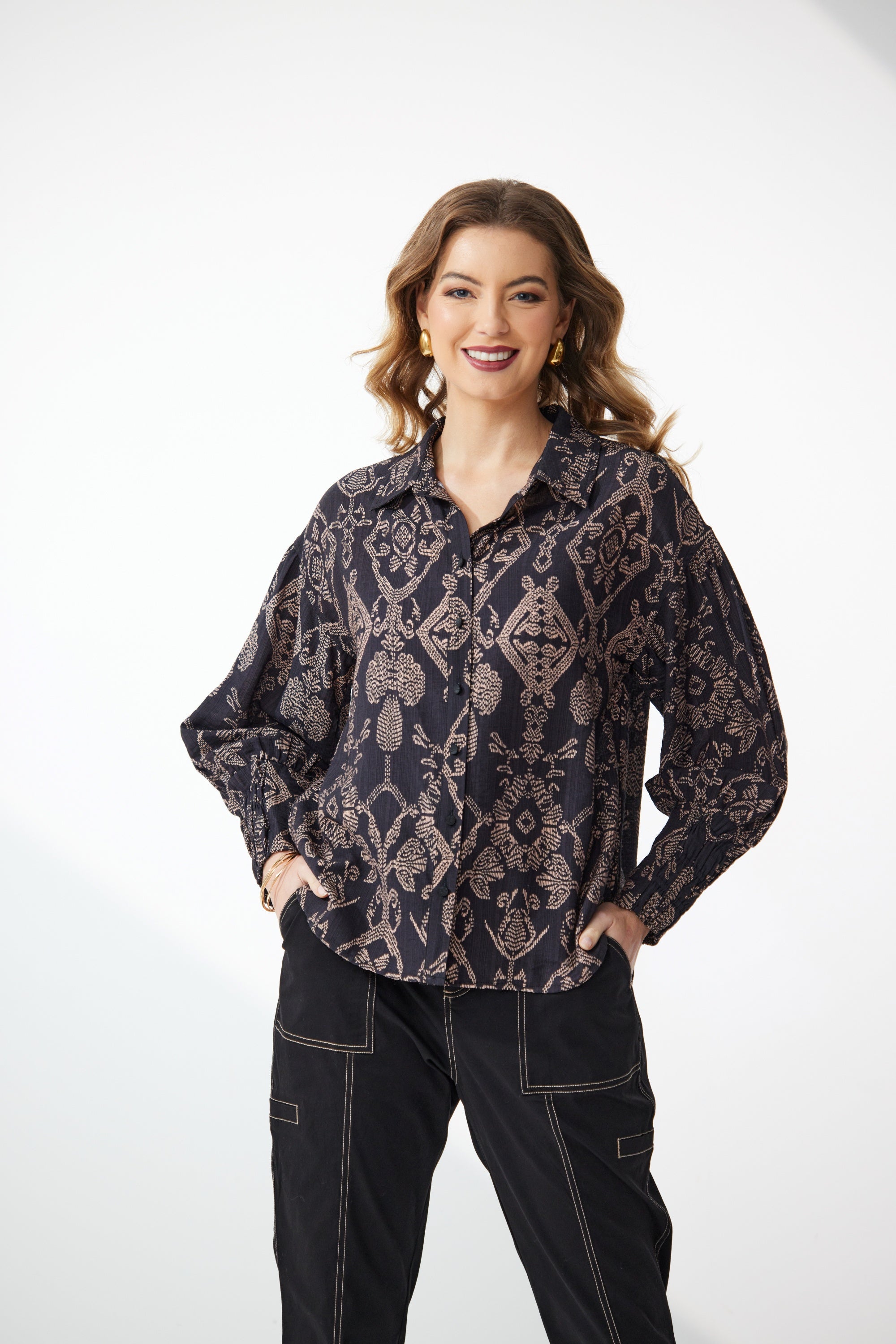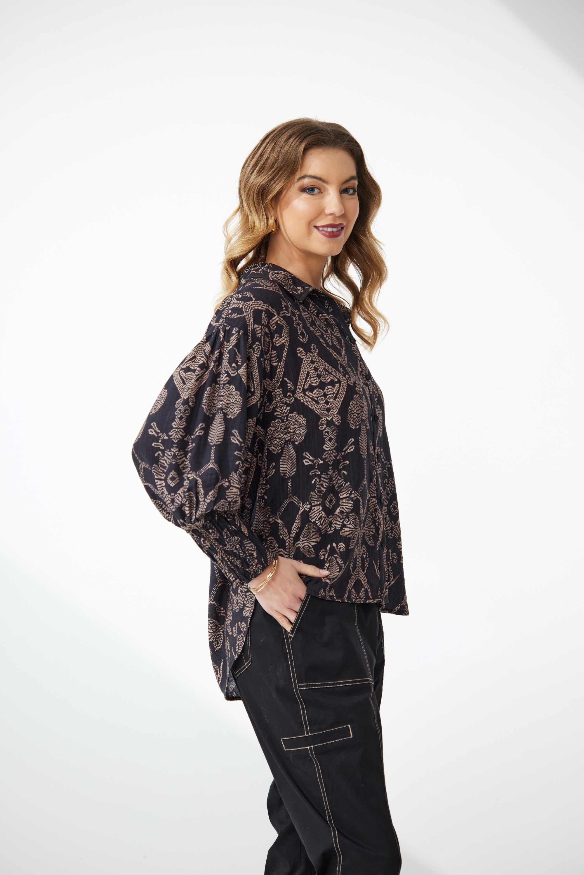 Loobie's Story Gala Shirt / LS2730 (Indigo Multi & Gold Multi)