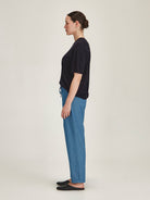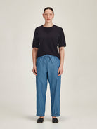 Part of our Winter Chambray collection, the Serena Pant offers a relaxed yet tailored look with its tapered leg and cuffed hem.