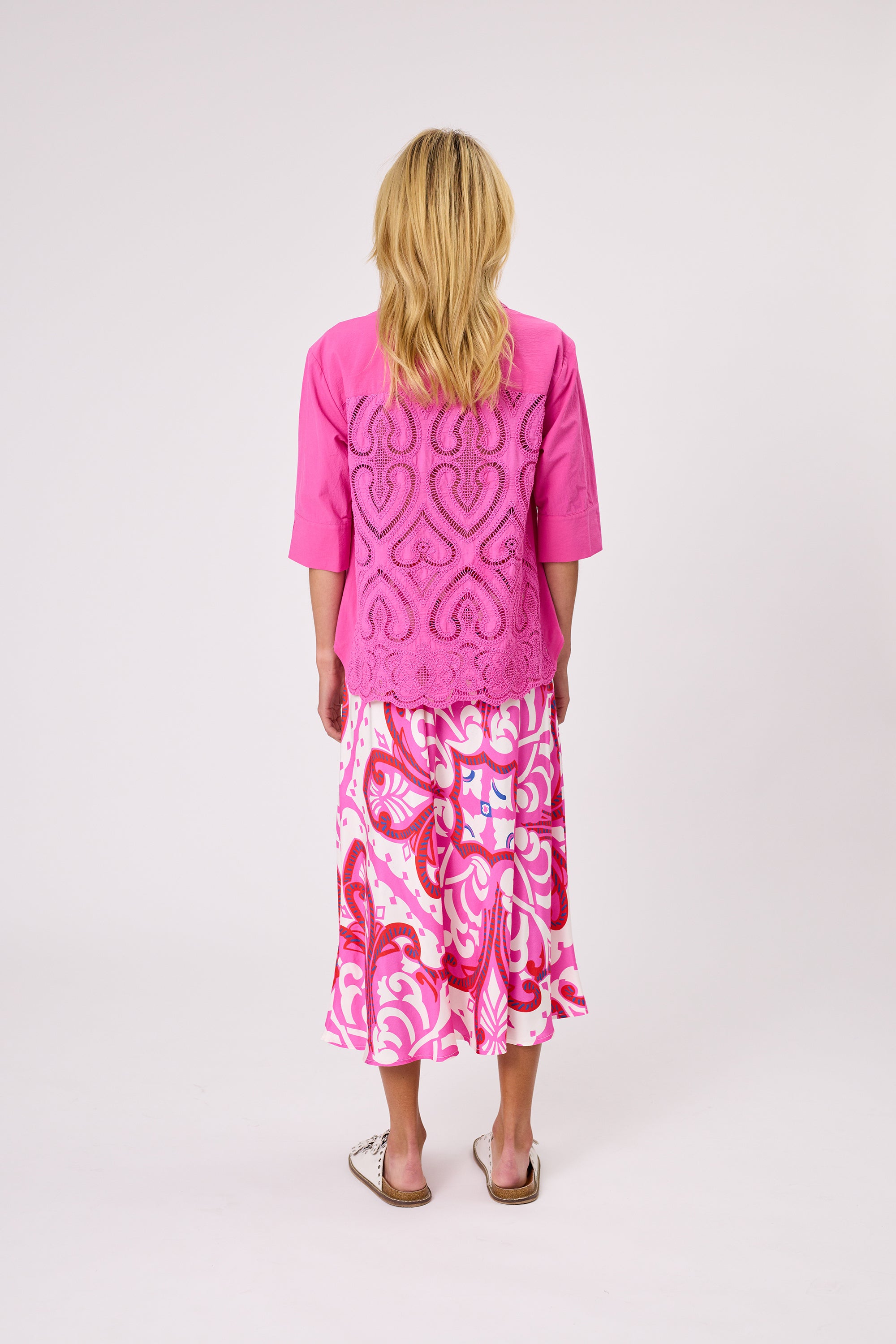 Allover Saint print long skirt. It is made of soft drapey viscose fabric. Fully elasticated waistband.
