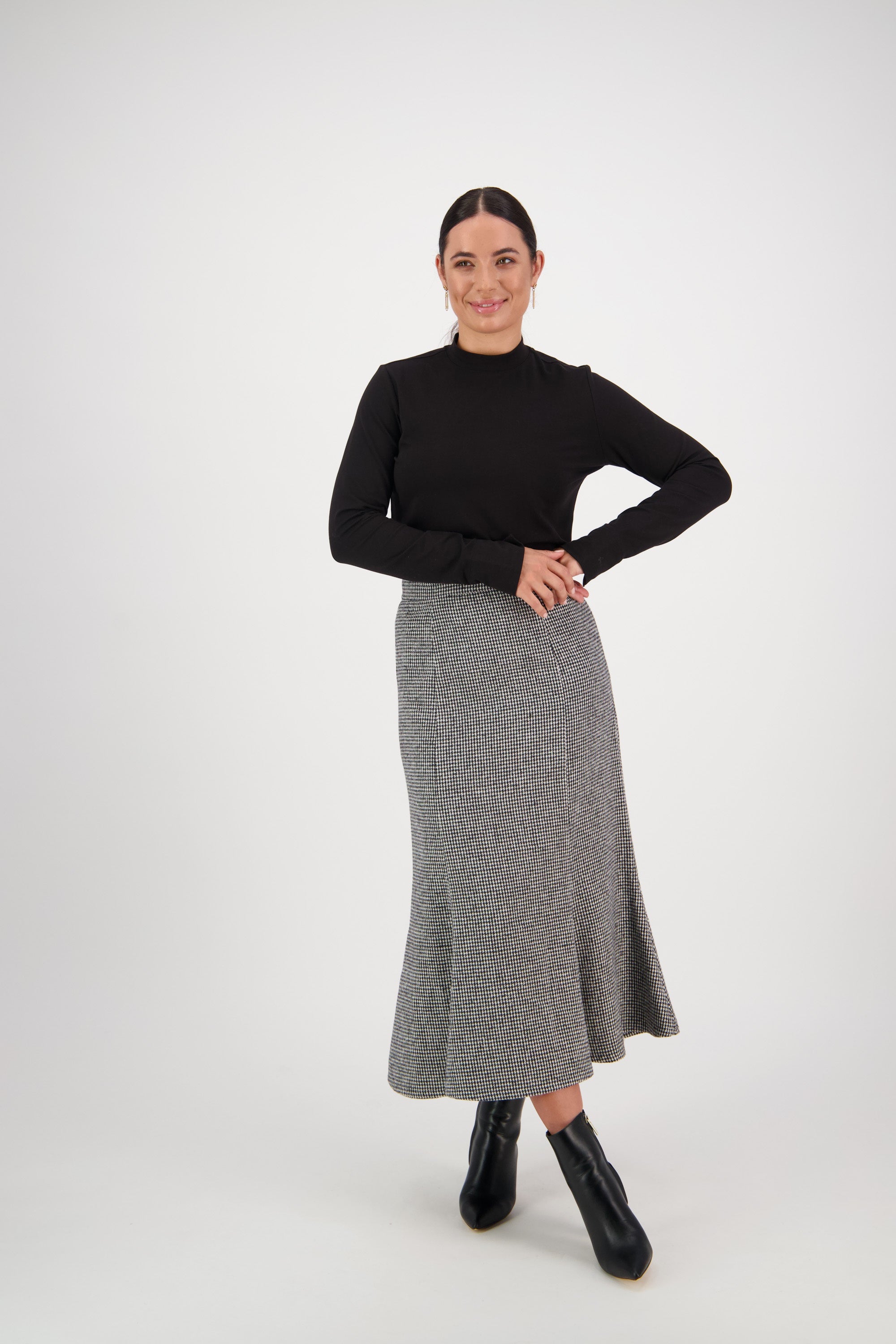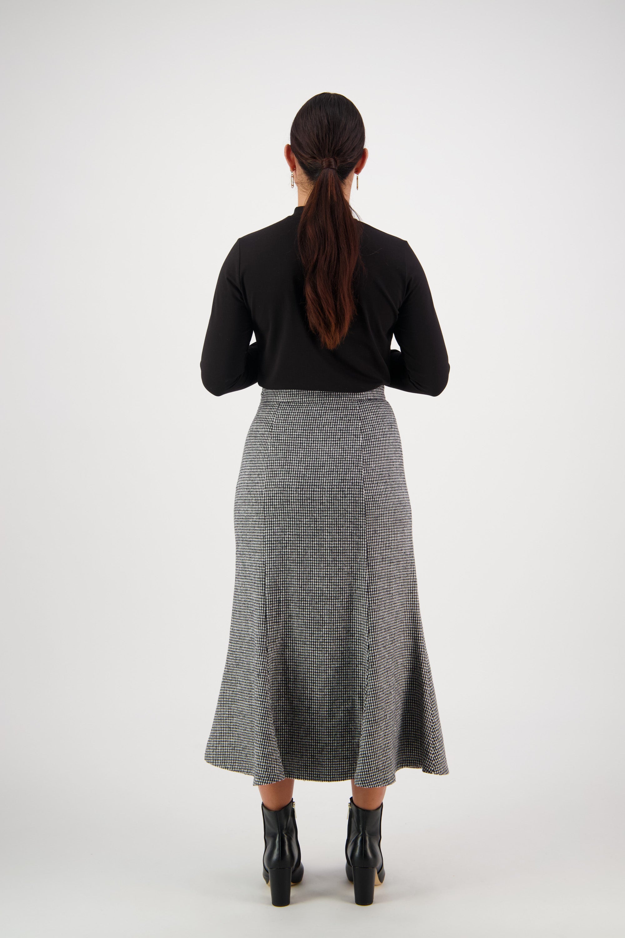 "• Vassalli Mid Length Fluted Skirt in Houndstooth