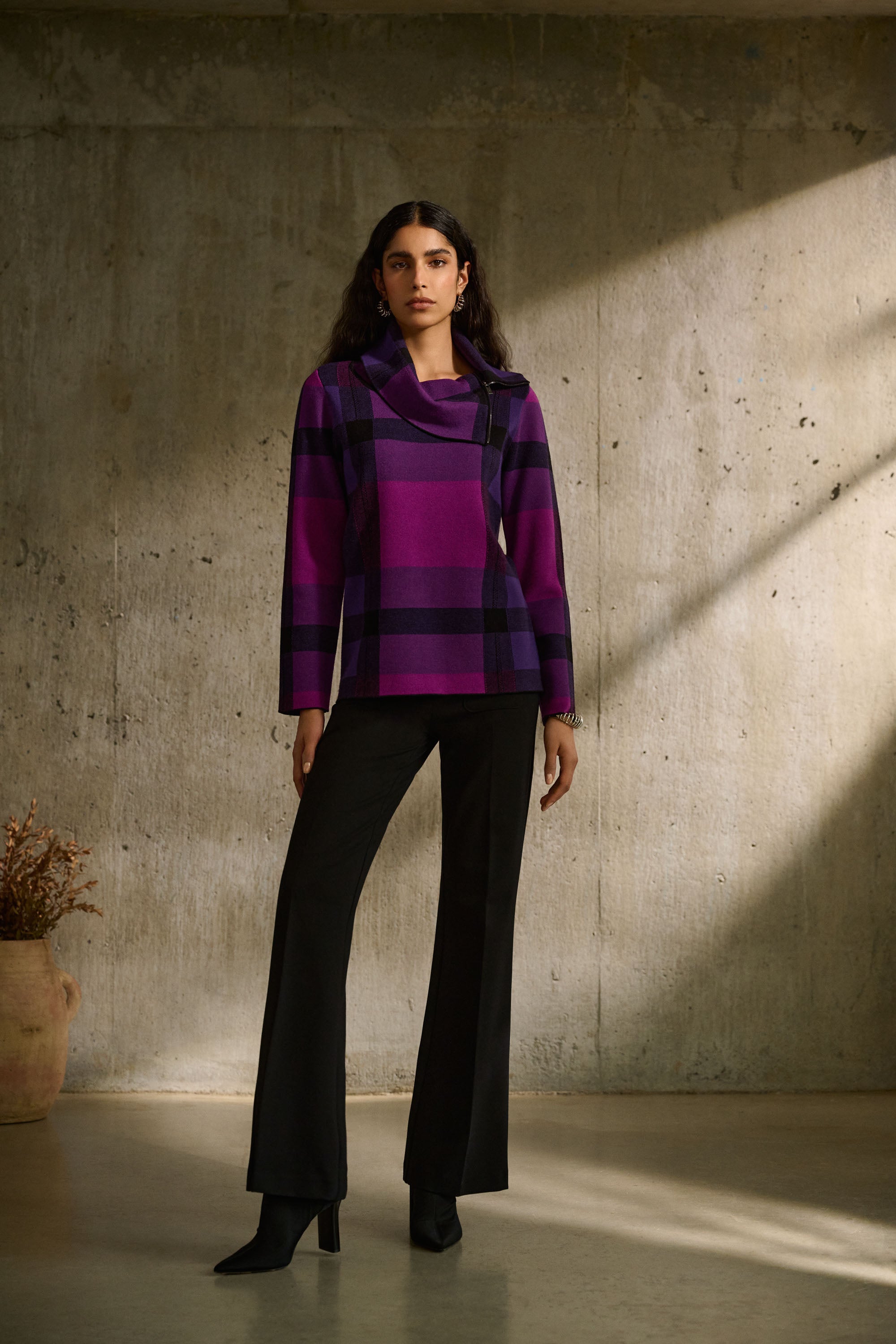 Joseph Ribkoff Plaid Jacquard Cowl Neck Sweater / 243943