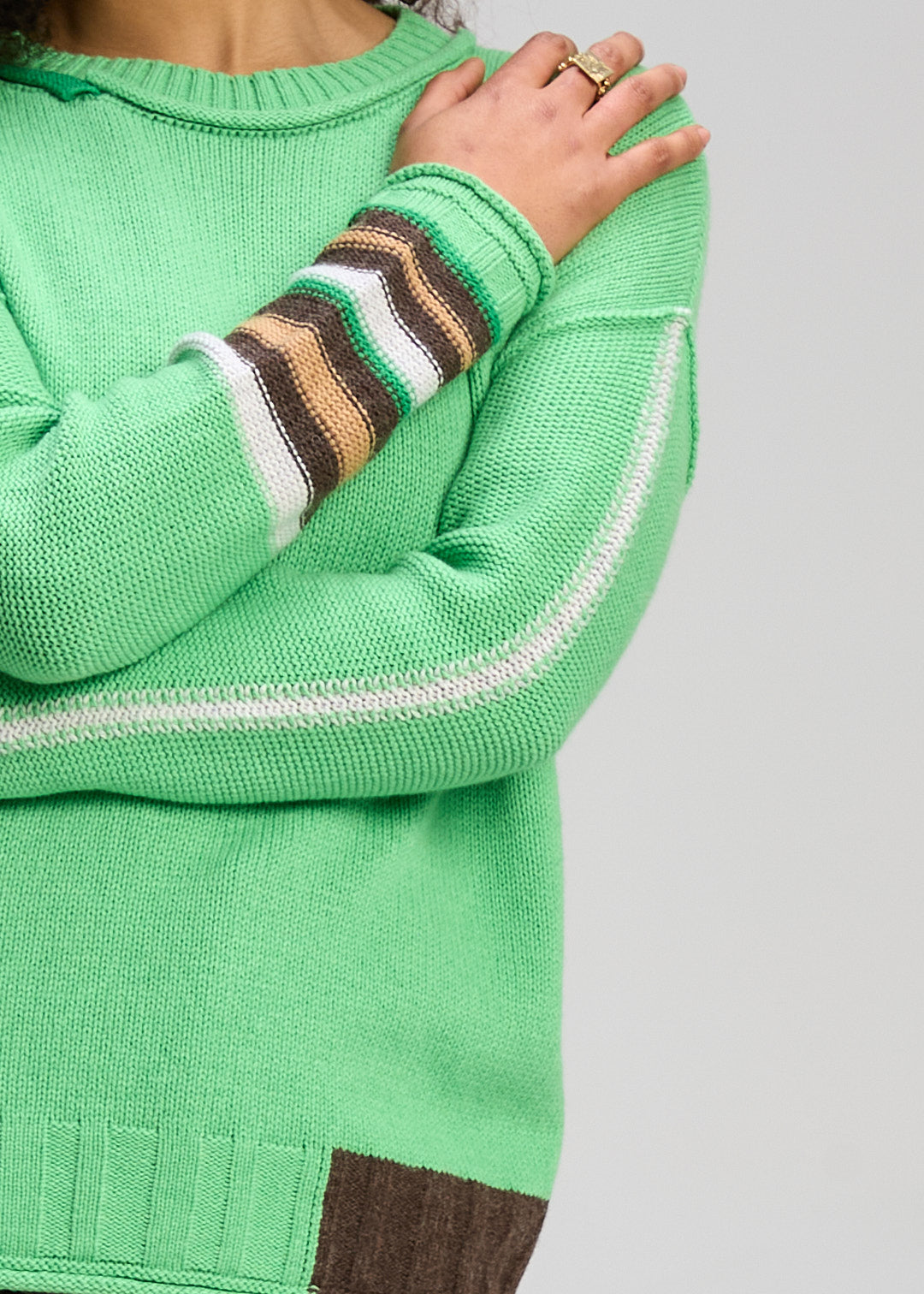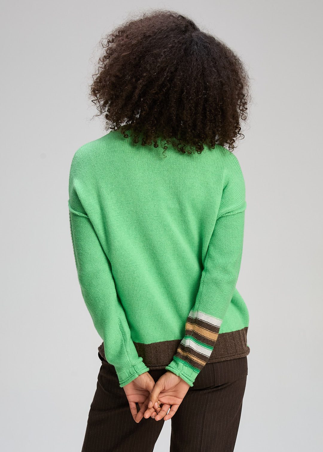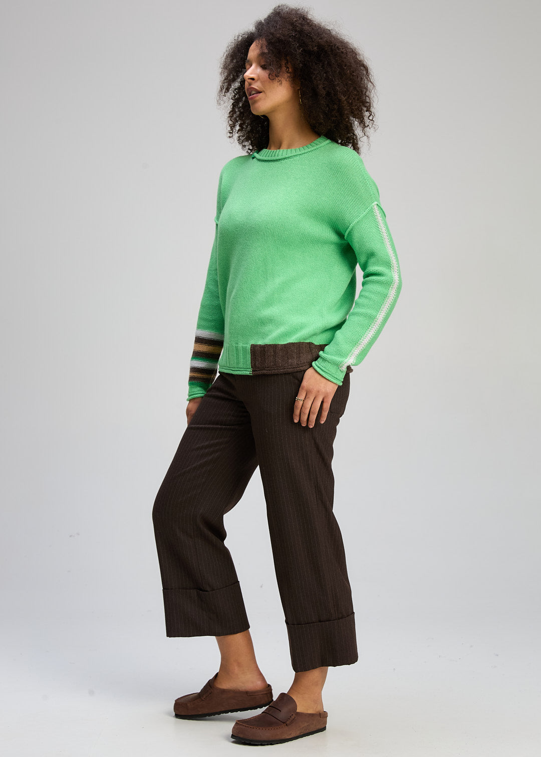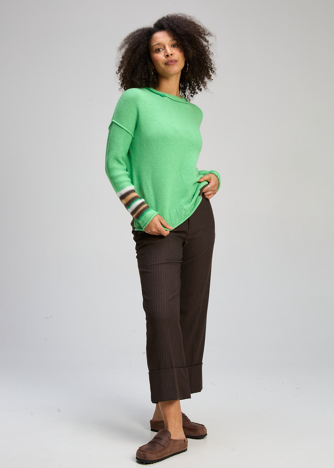 STYLED EDGES JJUMPER . Solid colour drop sleeve crew. Contrast extra roll around neck