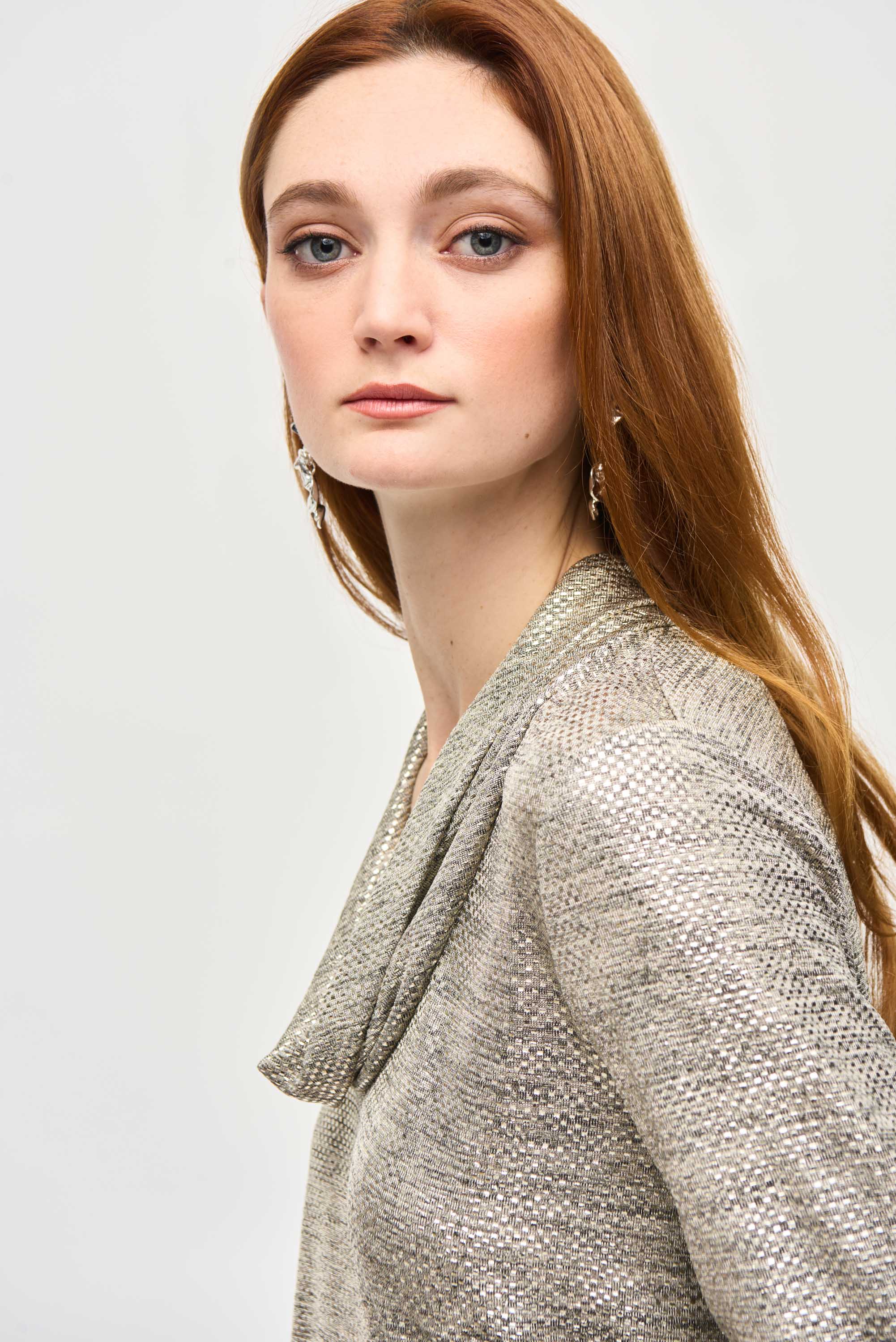 Joseph Ribkoff Foiled Knit Cowl Collar Top / 243167