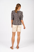 Wild - The Fizz Top in Wild print is made from lightweight cotton with a linen look, featuring a flattering V-neckline and a gathered centre front seam for subtle texture. Puff sleeves with gathered shoulders and pleated cuffs add a feminine touch, while side seam splits and a relaxed fit keep it comfortable and easy to wear. Floral Print.