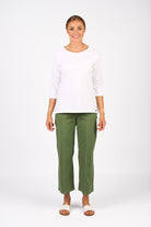 Made from soft, lightweight stretch cotton jersey, the Status Tee is an easy go-to with its relaxed fit and clean finish. It features a wide round neckline with a deep band and 3/4 raglan sleeves with cuffs, offering a simple, versatile option for everyday wear.