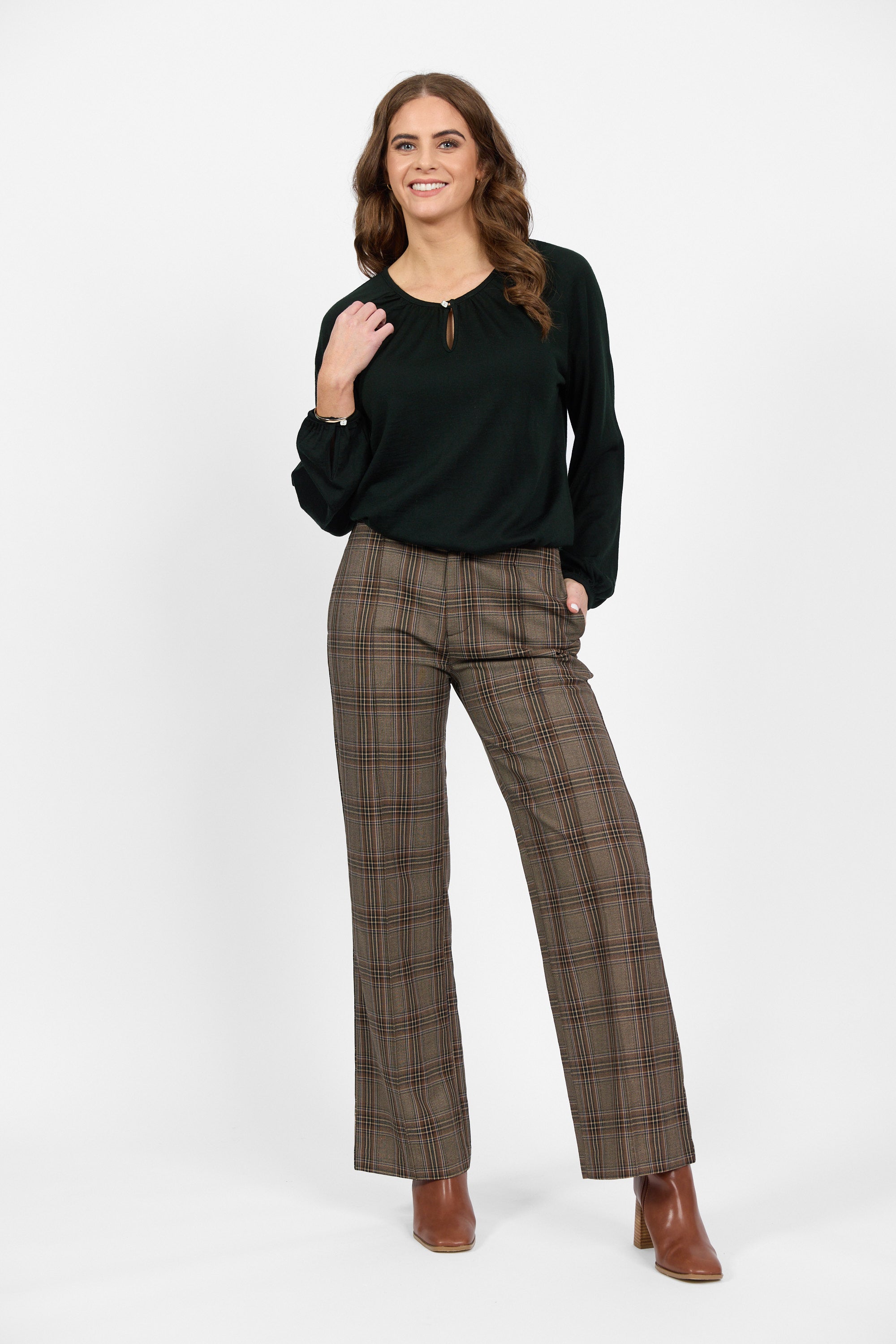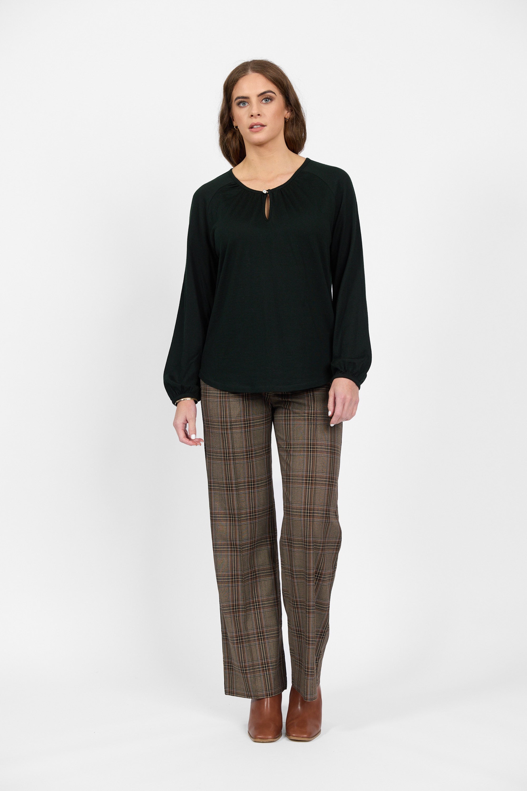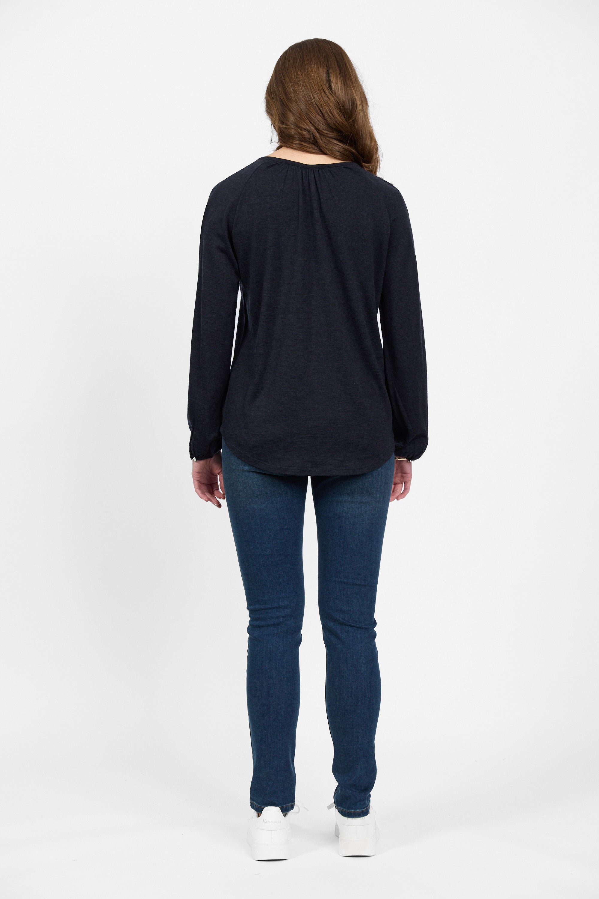 • Vassalli Merino Round Neck Top with Front Keyhole