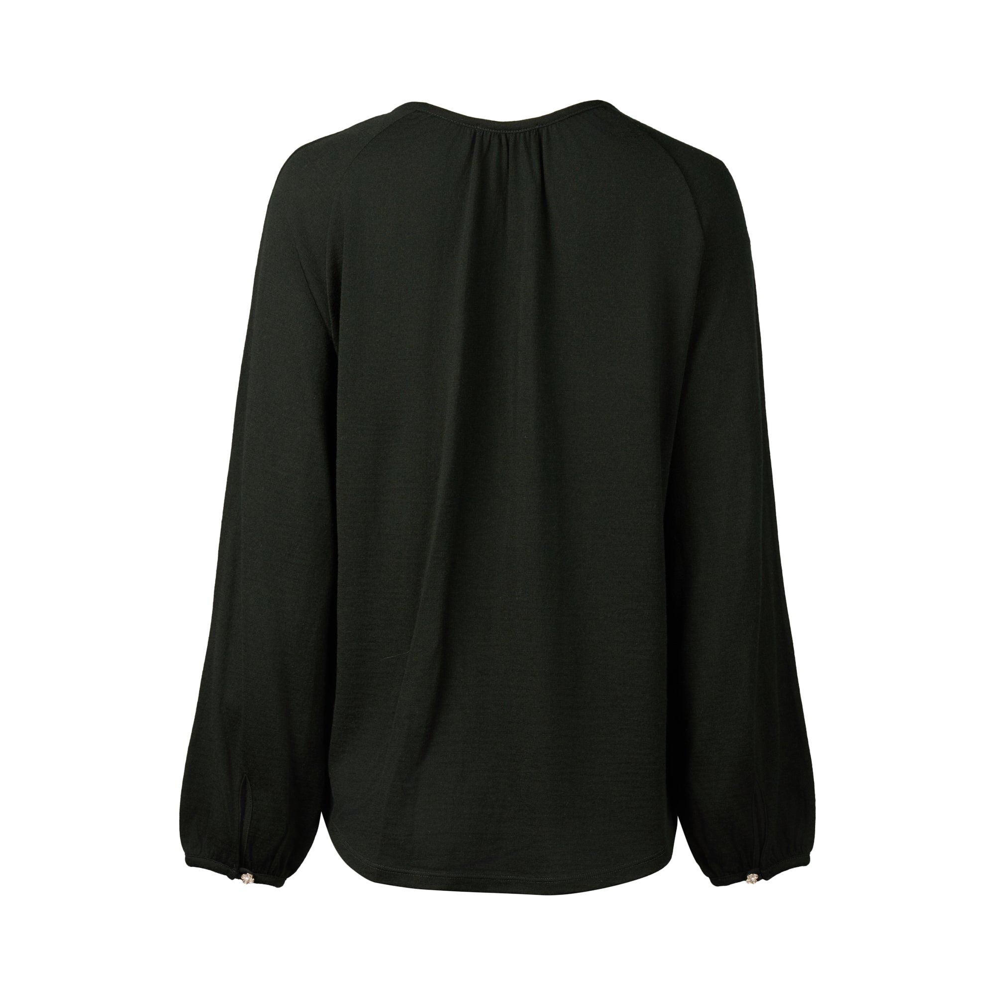 • Long blouson raglan sleeves gather into cuff