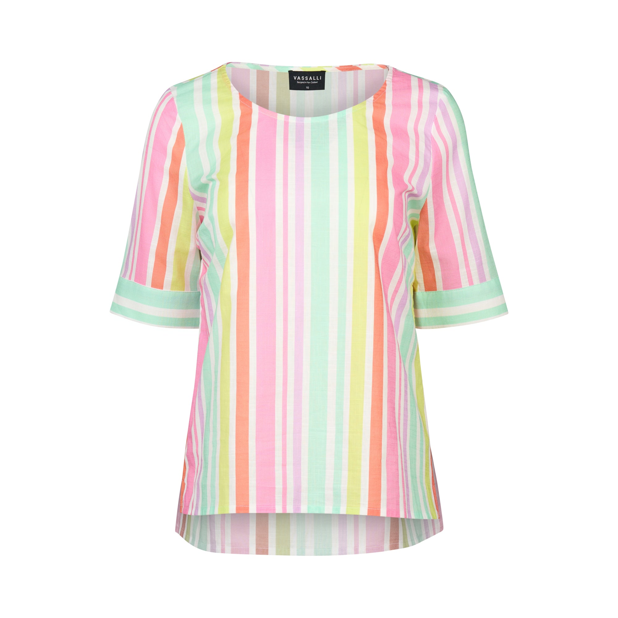 This colourful striped round-neck top is made from lightweight 100% cotton and features a relaxed fit with elbow-length sleeves for easy, everyday comfort.