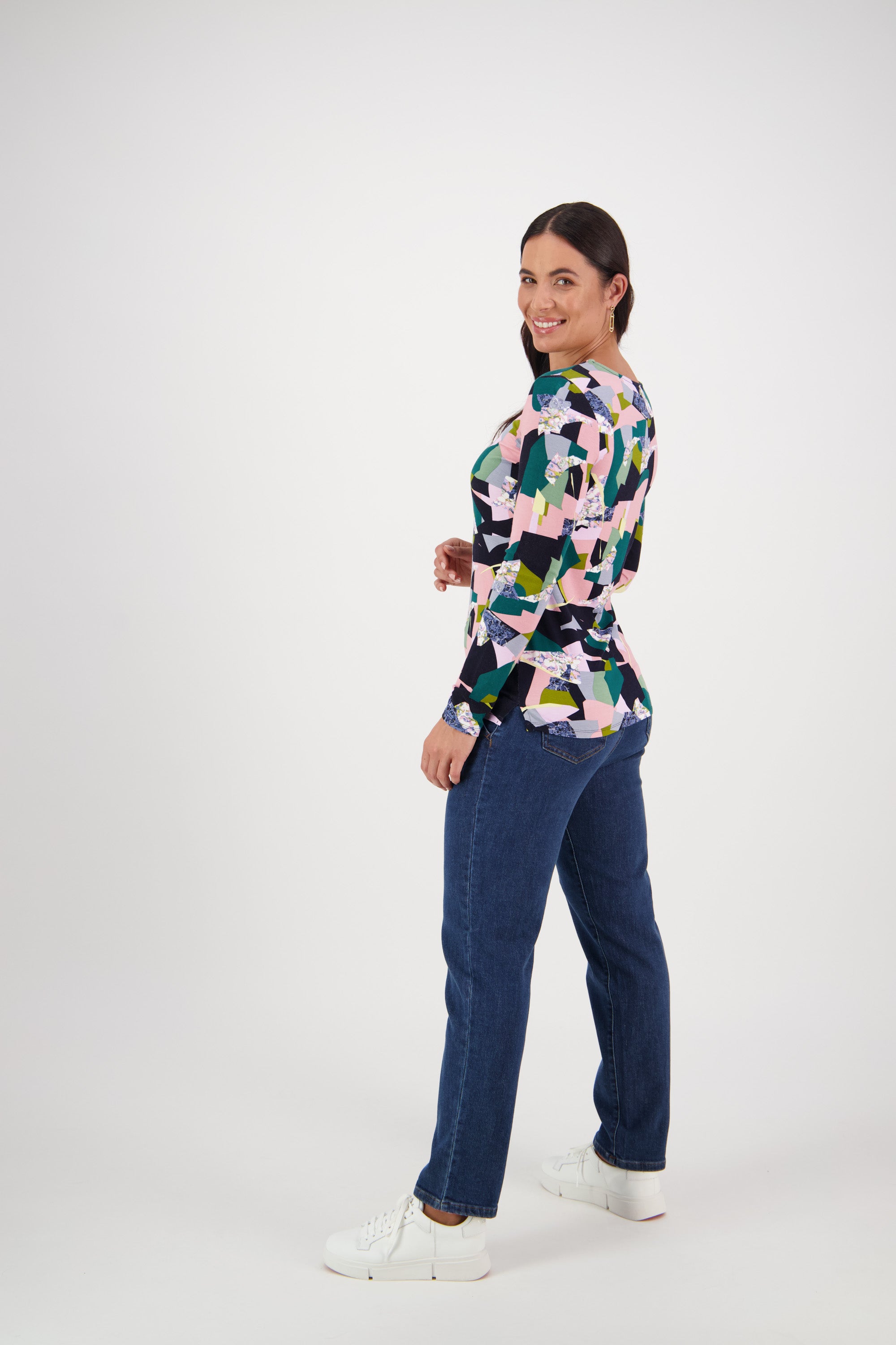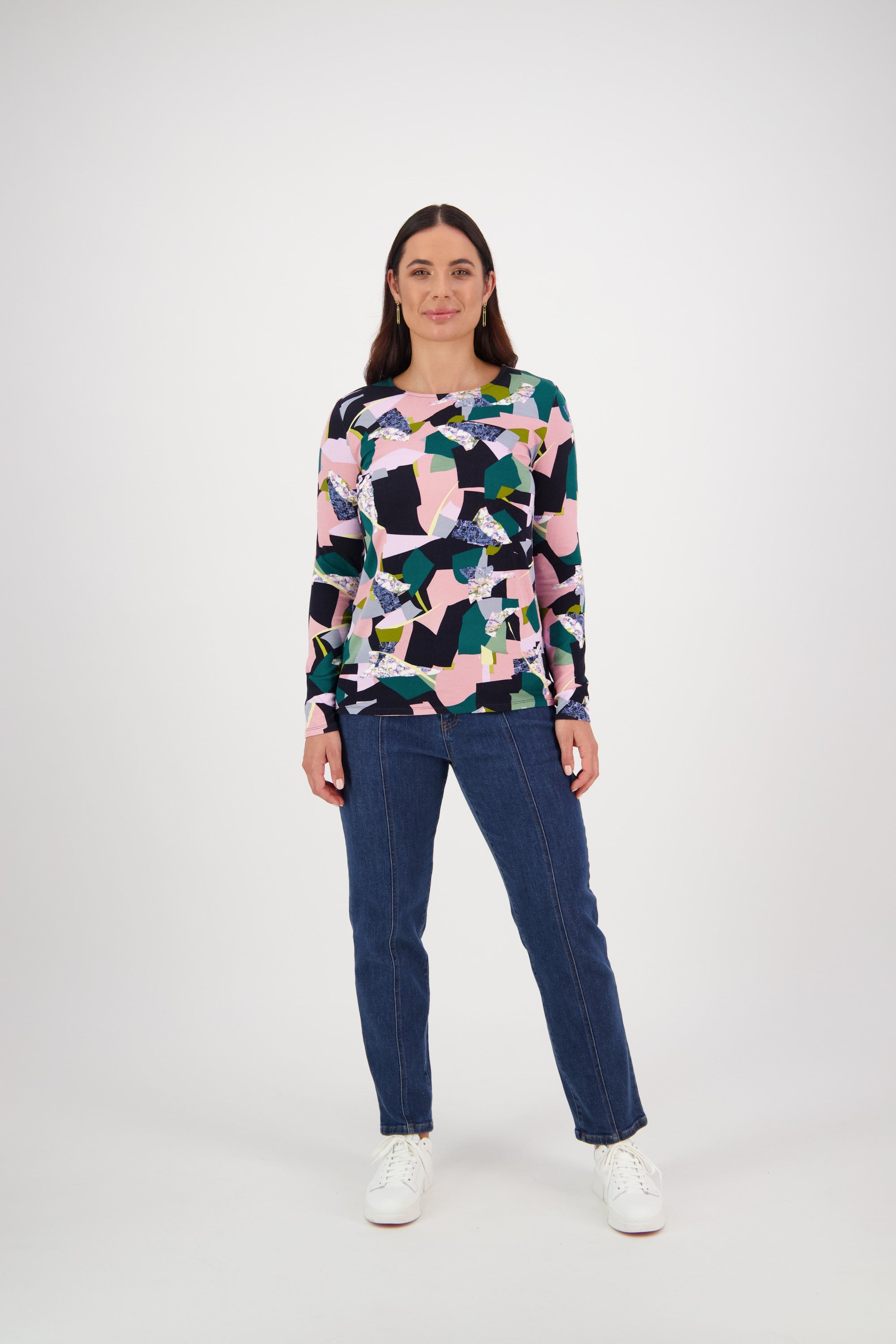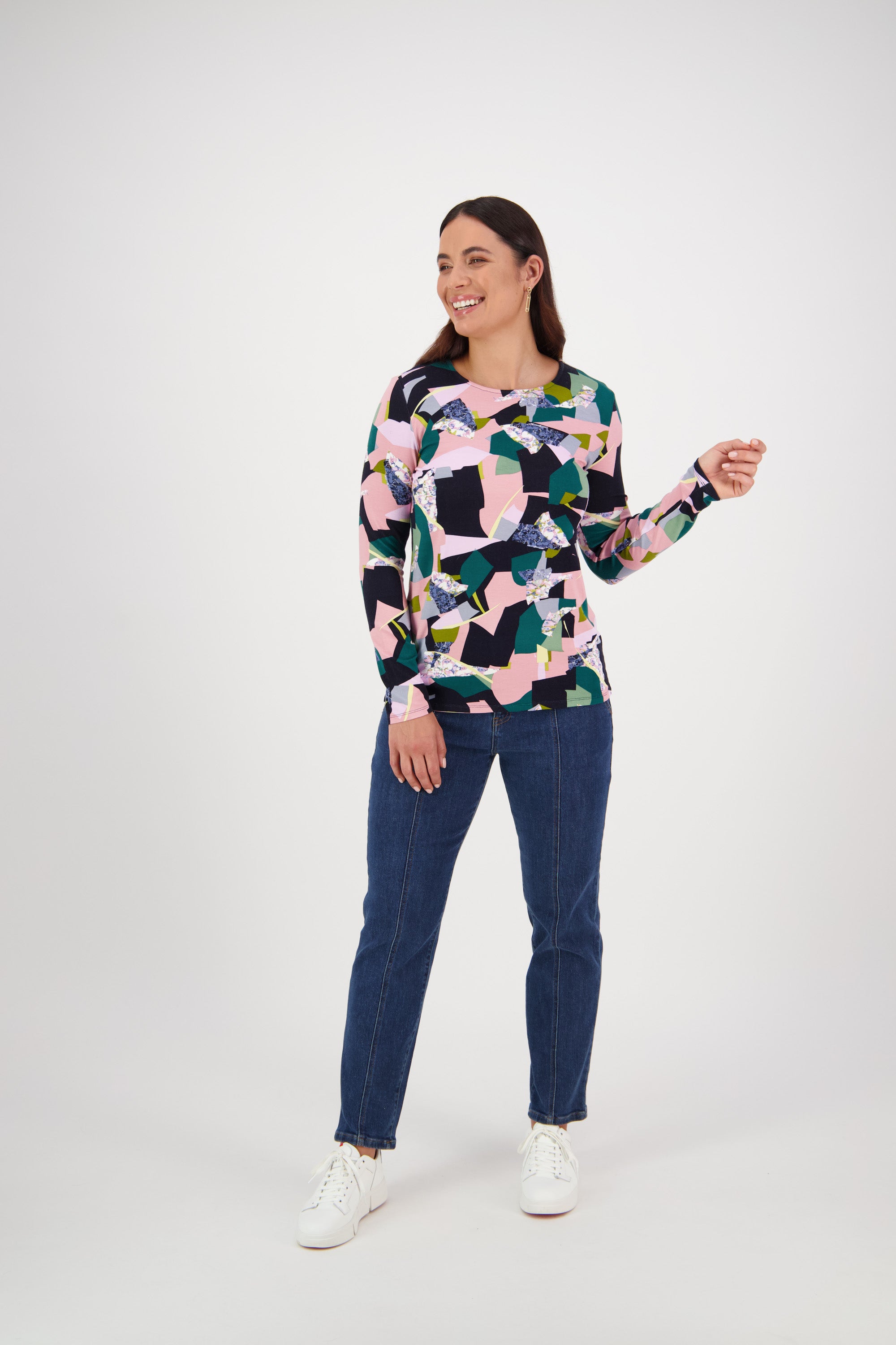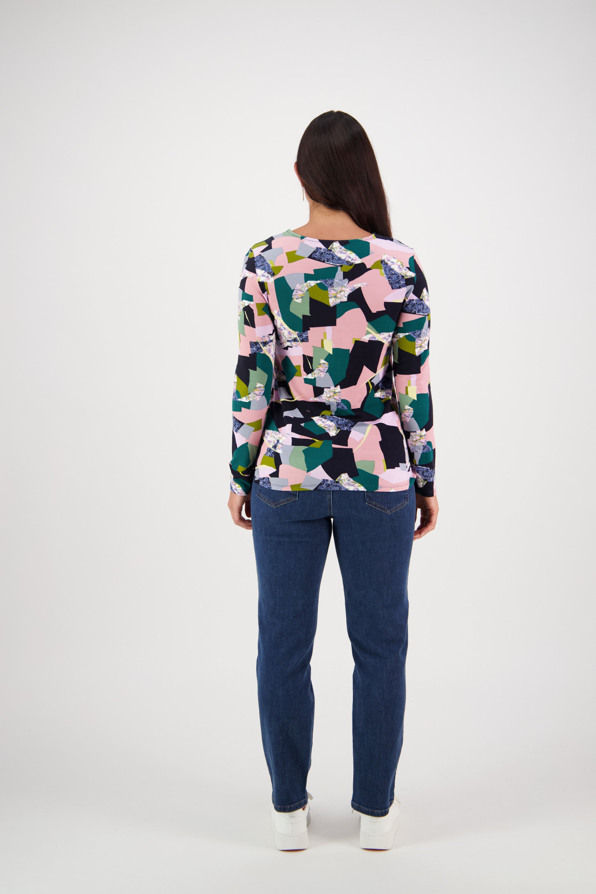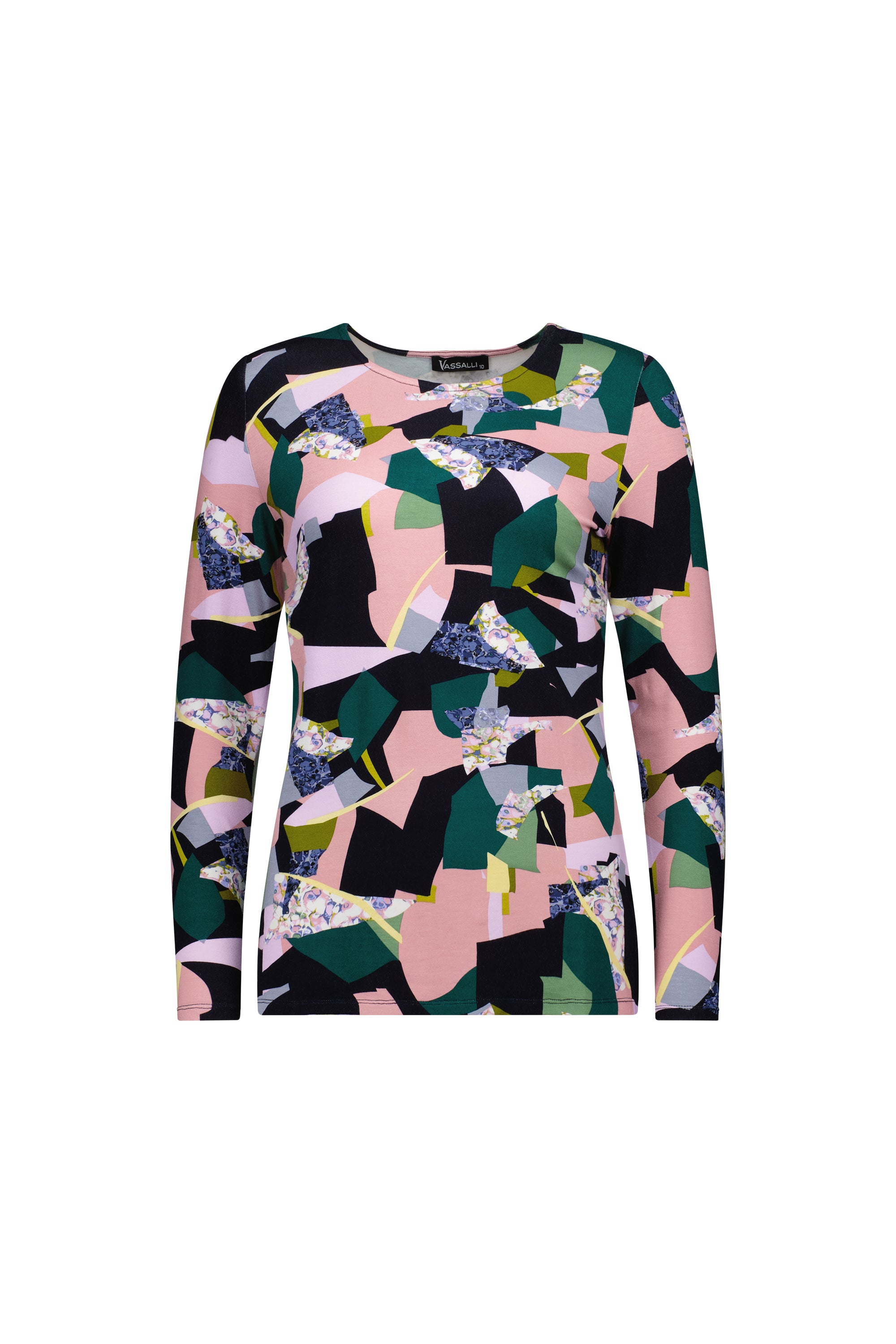 "• Vassalli Long Sleeve Round Neck Printed Knit Top.