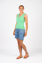 The Vista Tank is a simple, slim-fitting style made from midweight cotton-elastane rib. With a flattering V-neckline at both the front and back, it works effortlessly as a layering piece or a standout on its own.