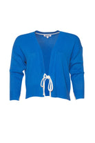 Relaxed fit cardi featuring a contrast placket, with a tie at front opening and contrast split on sleeve cuff.