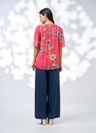 Printed, sheer blouse with a shirred front yoke to create a subtle sweetheart V-neckline. Featuring contrast printed shoulder panels at top of floaty sleeves. Lined through body.