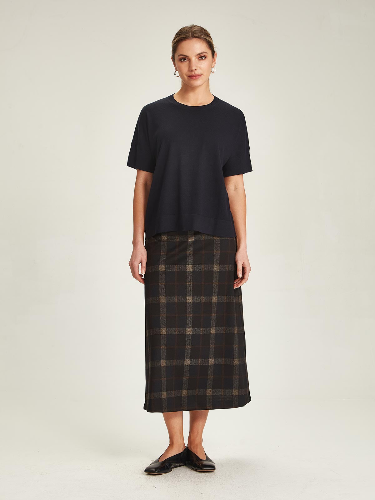 Effortless style and comfort are our favourite things about the Helena Check Skirt. With it's easy pull-on design and simple self faced waistline, Helena's adaptable fit makes her flattering for most shapes. Cut in our new AW25 Check Ponti print that's inspired by British heritage dressing.