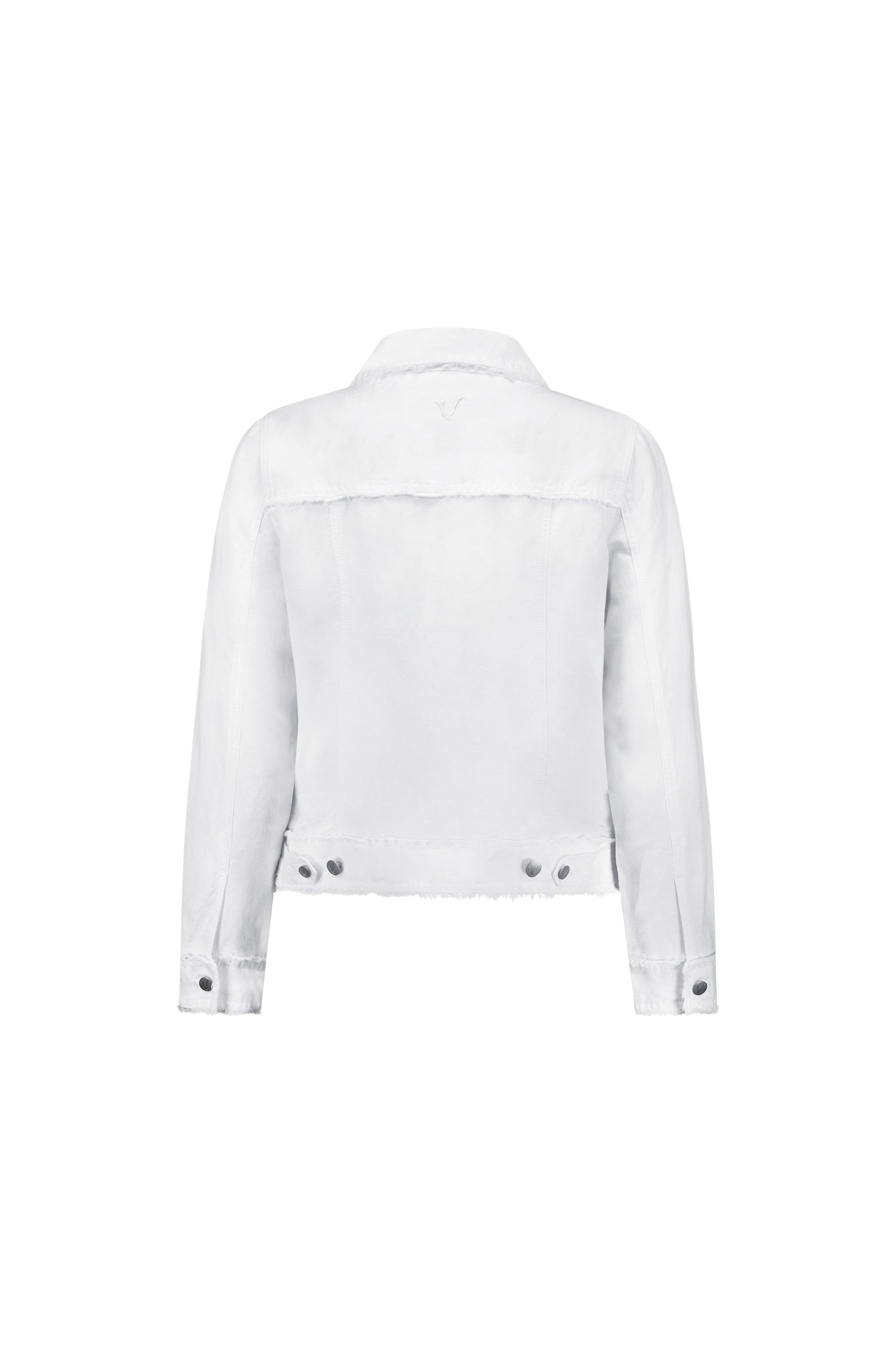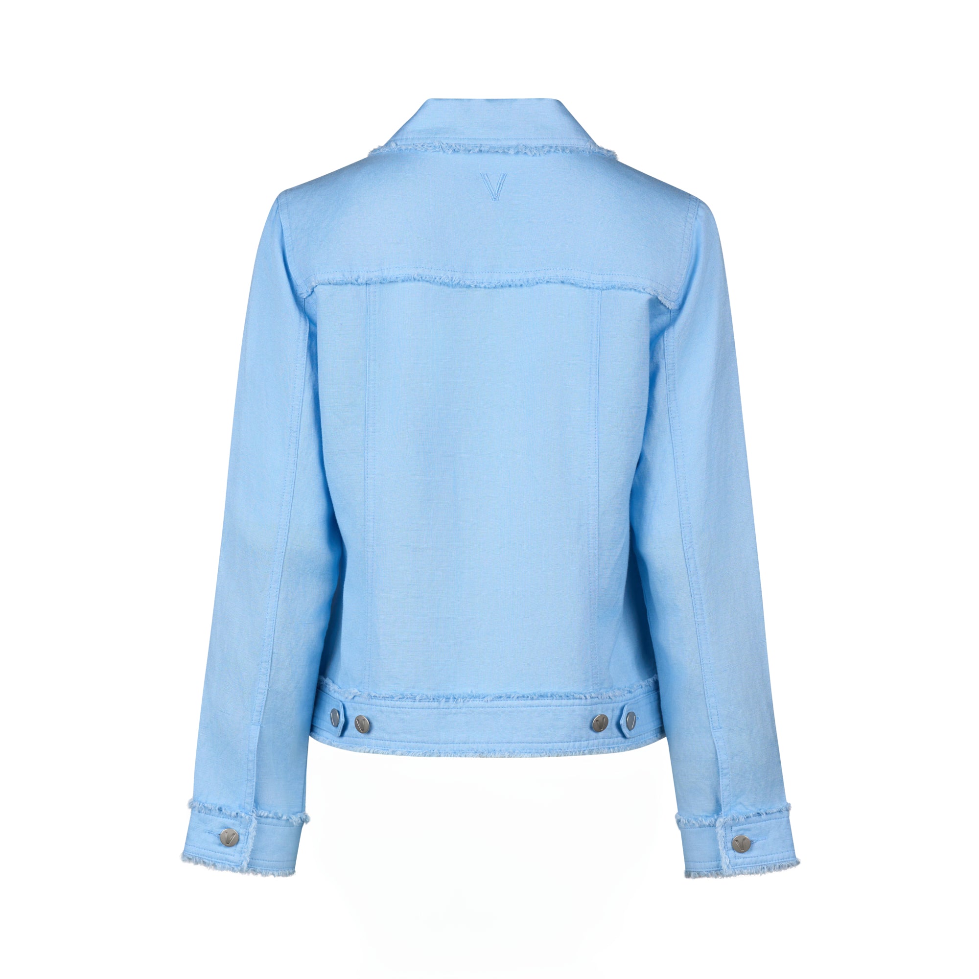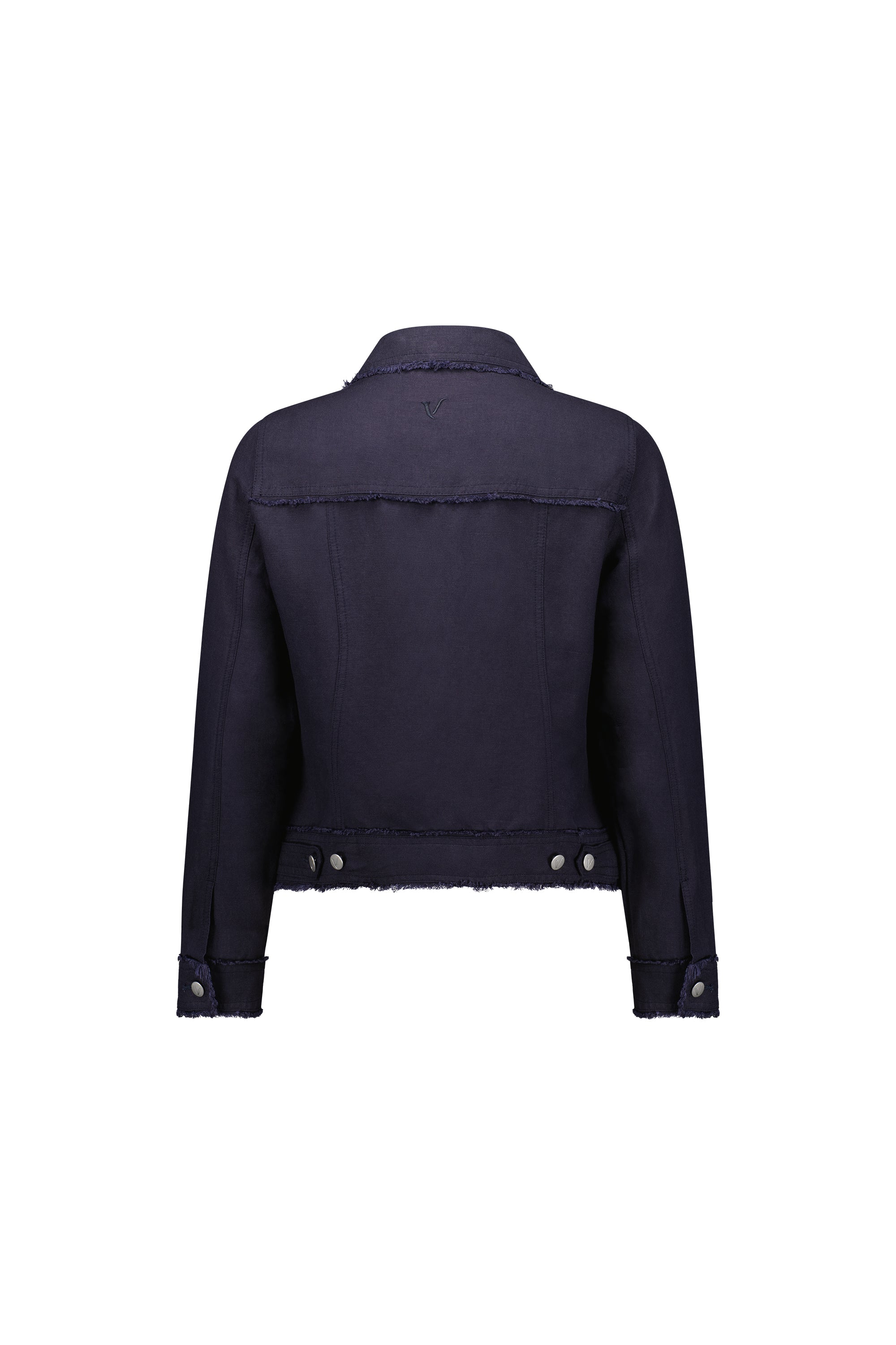 This button-up jacket is made from a linen-viscose blend and features frayed seam detailing for a textured look. Designed in a classic denim jacket shape with metal jean buttons and a relaxed fit, it’s an easy layering piece for everyday style.