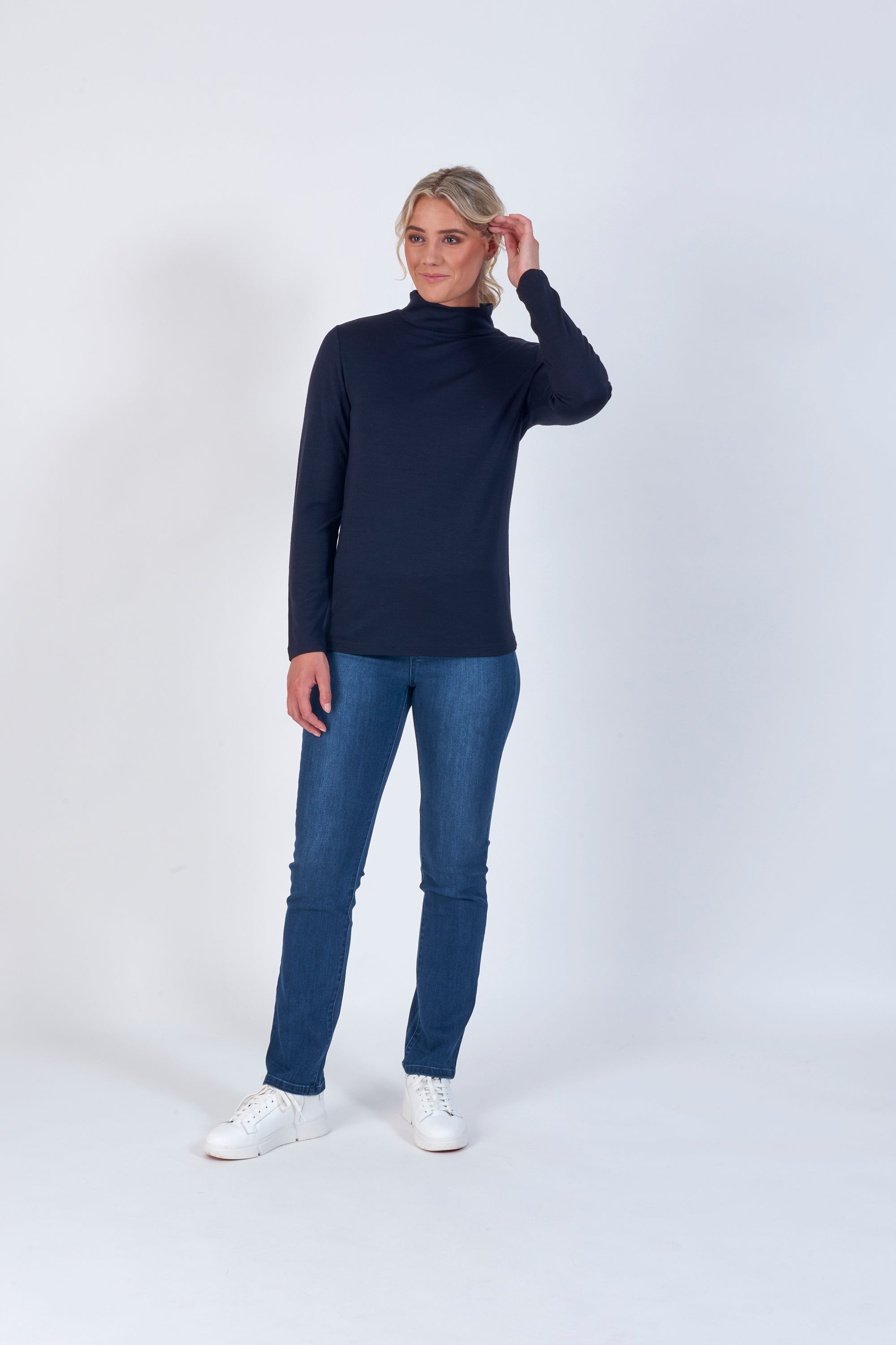 "• Vassalli Merino Basic Polo Neck Long Sleeve Top